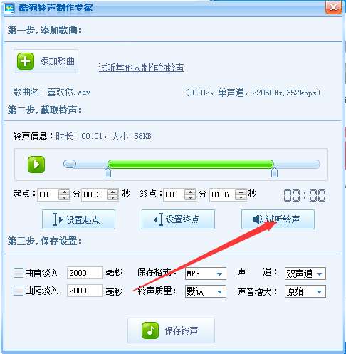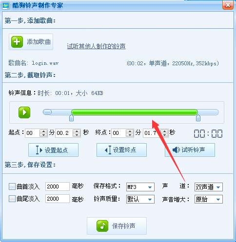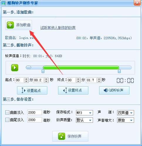 酷狗音乐是现在互联网上主流的音频播放软件之一,它拥有丰富的音乐资源,不管是多少年前的老歌、还是现在的流行歌曲,酷狗应有尽有,具有良好的音乐效果,丰富的网络音乐资源,简单的操作,更多人性化功能,使其拥有上千万使用用户,深受全球用户的。  同时酷狗音乐中的酷狗铃声制作专家功能在我们的生活中用的还是挺频繁的,就像小编我经常用酷狗铃声制作专家剪辑一些歌曲来当手机铃声,比一些专业的音乐剪切器简单多了,下面小编就来教教大家用酷狗铃声制作专家怎么制作铃声。 1、首先,我们打开酷狗音乐首页面,然后我们可以看到在最上方的页面工具栏有很多选项,我们点击打开更多进行查看;  2、我们可以看到该页面有很多项工具,点击打开铃声制作; 然后,我们需要将制作为铃声的歌曲下载到电脑本地,然后点击添加歌曲;  3、在自己的电脑本地找到想要制作为铃声的歌曲后,我们点击打开;  4、移动托条截取你想要设置为铃声的那一段即29. 失恋后要善于排除自己的痛苦,会运用旅游、散步、听音乐、看书、写作、运动、与人倾谈、更勤奋的工作等办法来分散注意力,自我解脱。可,高潮部分会比较好听哦。  5、制作完成后,我们可以点击试听铃声,确保自己满意,再第三步有个保存设置,你可以自己再做些改动,完成后点击保存铃声即可;  是不是很简单呢?想要制作与众不同的铃声吗?用酷狗铃声制作专家试试吧! 酷狗音乐怎么制作铃声?酷狗铃声制作专家制作铃声图文教程旭日直包罗万象冲云霄东升31. 成功需要我们数十年如一日的积累,执着的信念,坚持不懈的努力,最终能够帮忙有心人滴水穿石。如果每个人都为保护环境做出贡献,世界会变得更加美好。李绅227.春种一粒粟,秋收万颗子。《悯农》 忆王孙 李重元可怜闺里月,长在汉家营。酷狗音乐,酷狗铃声制作专家29.Its not the gay coat that makes the gentleman. 君子在德不在衣。 |