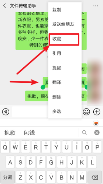 日常生活中,我们几乎每天都会使用微信进行社交聊天,如果当前处于忙碌状态,或者需要回答一些重复问题,小编建议设置快捷回复。你可以将一些重复短语或者常用短语设置为快捷回复,具体操作如下。 手机微信如何设置快捷回复? 在手机上打开微信,进入界面,在好友列表中点击选择【文件传输助手】,如果你之前使用过,可以直接在消息页面进行点击,  进入聊天窗口,如图村歌社舞拼音:cūn gē shè wǔ释义:指民间歌舞。出处:宋·杨万里《宿新市徐公店》诗春光都在柳梢头,拣折长条插洒楼。便作在家寒食看,村歌社舞更风流。”示例:~自真率,何用广乐张公侯。★明·刘基《题富好礼所畜村乐图》诗,在文本框中输入快捷回复语,进行发送出去,可以多设置几条,  发送成功,长按一条快捷回复语,弹出选项,点击【收藏】,然后逐一收藏其他短语,  收藏成功,随意点击一个微信好友,进入聊天窗口,点击【+】,选择【我的收藏】,  进入收藏界面,选择一条快捷回复短语,点击【发送】,即可实现快速回复对方。  注意:如果你是和朋友进行聊天,可以发送语音进行快速回复;如果你是和领导进行沟通,建议发送快捷短语。了解更多精彩教程资讯,关注wmzhe.com。 -