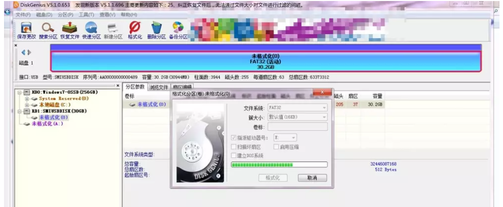 出于工作需要,我们会将U盘进行分区,后期工作结束,还可以选择合并U盘分区,那么问题来了,如何合并被分为两个盘的U盘?下文简单介绍了使用DiskGenius合并U盘分区的方法,请参考。 U盘被分区之后如何进行合并? 首先,你把U盘插入到电脑USB接口,然后鼠标双击【计算机】,进入以下界面,可以看到U盘被分成了两个盘,  现在点击打开DiskGenius软件,如图,这里会显示你的U盘,  鼠标右击U盘,弹出菜单,选择【删除所有分区】,出现提示,点击确定,   然后点击上方【空闲】区域,鼠标右键,选择【建立新分区】,   弹出对话框,如图,选择文件系统类型为FAT32,点击确定,回到软件界面,点击左上角的【保存更改】,   点击上方【未格式化】,鼠标右键,选择【格式化当前分区】,如图所示,   出现提示,点击确定,即可进行格式化操作,耐心等待,   现在点击桌面任务栏中的文件夹图标,进入以下界面,你会发现U盘变成了一个分区,不再是两个盘符。  使用DiskGenius合并U盘分区的方法就是这么简单,你学会了吗?想了解更多精彩教程资讯,关注wmzhe.com。 -