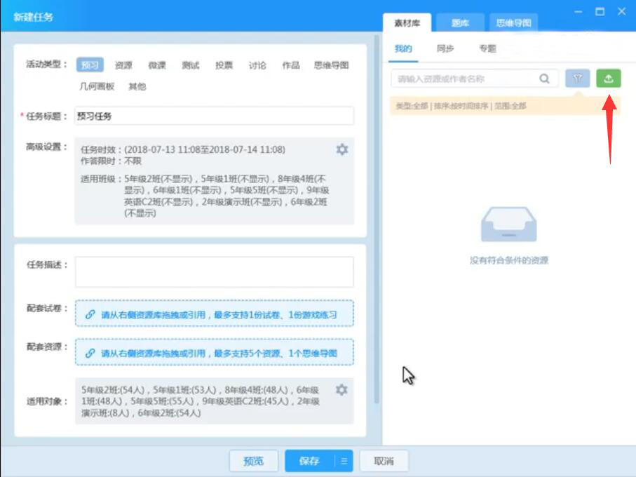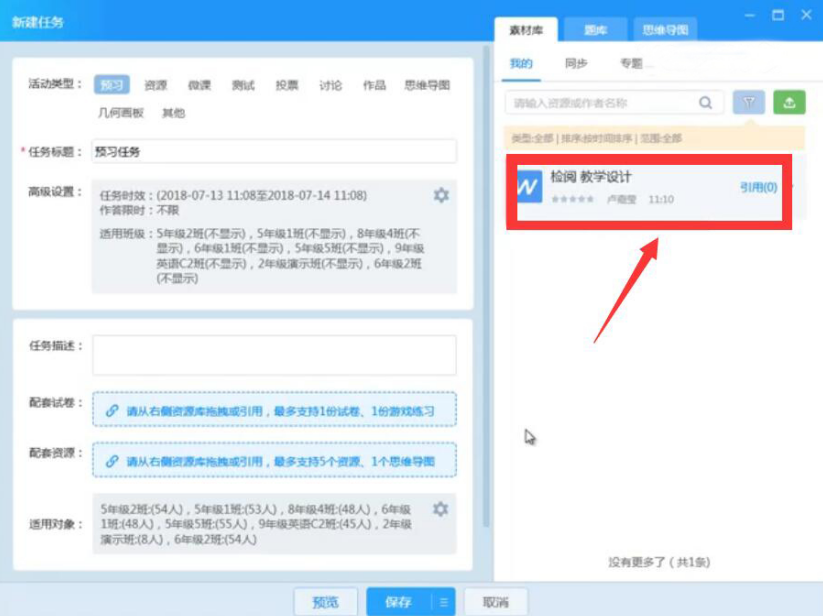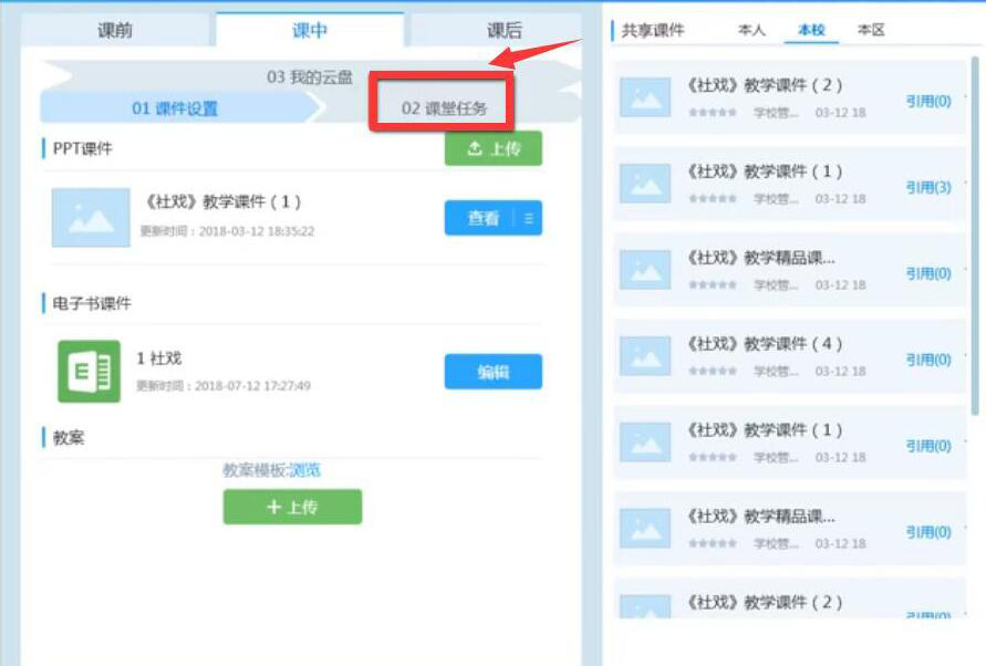 对于老师来说,备课都是一件让人头疼的事情。因为每次备课的时候,自己不仅要熟悉教材,要做很多资料,还要在网络上收集相关的教案。可是相信老师都会遇到这样的问题,就是搜到的教案能真正用到的是很少的,单单是备课就需要耗费很多时间。 而AiClass资源库恰能解决这一问题。AiClass有它专门的资源库,内置有丰富的教学资源。重要的是这些资源都是和当下教材的章节相互匹配的。可是,很多新用户不了解AiClass资源库怎么使用,所以,本文将分享AiClass资源库使用教程,帮助老师们轻松备课。 如何使用AiClass资源库进行备课? 1、用户先登录AiClass,在AiClass的课中操作界面中,点击“课堂任务”。  2、进入课堂任务后,用户点击右上方的“+新建任务”,从而进入AiClass资源库使用的下一步操作。  3、在新建任务的操作界面中,点击“资源”,并在资源对应的右侧界面中切换到“同步”,在AiClass资源库中选择自己所要的教案,点击“引用”,该教案便会出现在左侧的“配套资源”中,之后,点击“保存”按钮。  4、此时,用户可以发现资源任务已经被加载到课中任务列表,点击右上方的“一键发布”按钮。  5、AiClass资源库使用的时候有个人性化的地方,就是用户可以点击AiClass资源库的上传按钮,上传自己制作的教学资源。  6、点击上传后,AiClass会弹出如下图的资源打开窗口。用户点选自己的教学资源,点击“打开”。  7、接着,来到AiClass便会弹出“上传资源”的操作界面,用户直接点击下方的“上传”按钮,AiClass便会执行将该资源加载到AiClass资源库的指令。  8、随后,用户便可以在AiClass资源库找到自己上传的教案资源。  9、接下来,回到桌面左下角的授课,点击“课中”,在其下拉菜单中将需要推送的AiClass资源设置为可见。  10、最后,用户可以发现推送成功了。学生端的平板便可以收到该AiClass资源,从而就可以方便学生的学习了。  AiClass资源库在使用的时候,要注意的是用户可以在资源库中一次性最多使用5个AiClass资源。也可以上传自己创作的AiClass 资源,支持上传ppt、动画、图片、word文档、音视频。4. 你的每一段经历都会把你的胸怀拓宽一点点,使得它作为一个接收容器,能容纳下尽量多的幸福。 -