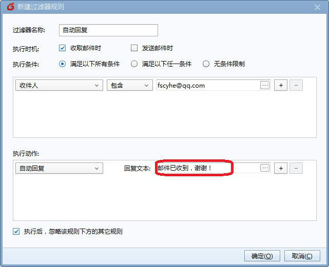 foxmail是一款非常受欢迎的电子邮件客户端软件,很多用户不知道如何在foxmail上设置邮箱自动回复,今天我们就来演示一下foxmail怎么自动回复。 foxmail如何设置自动回复邮件? 1、登录foxmail,点击右侧“三”字图标,在其下拉菜单中依次点击选择【工具】—【过滤器】。  2、弹出“过滤器”窗口,点击【新建】。  3、弹出“新建过滤器规则”窗口,将过滤器名称“新建过滤器”改为“自动回复”。  4、在“发件人名称或邮件地址”下拉菜单中选择【收件人】。  5、点击选择【包含】。  6、在其后空白处输入收件人邮箱地址。  7、在执行动作下方点击【自动回复】。  8、在回复文本框内输入自动回复内容,然后点击确定。  9、在“过滤器”窗口可以看到“自动回复”已经被添加,点击【立10. 我要当公交车司机。司机叔叔太牛了,开这么大一辆车,载这么多乘客,开开关关,走走停停,一切都要听司机叔叔的指挥。司机不开门,谁都不准下车。即执行】;在弹出的“立即执行”窗口选择“收件箱”,点击确定即可。  以上就是关于foxmail设置自动回复的方法介绍,了解更多精彩教程资讯,关注wmzhe.com。 -
