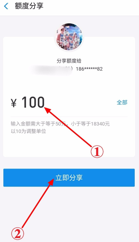 现如今,使用手机支付宝付款已经成为一种趋势,如果你的账户余额不足,还可以开通支付宝花呗服务,即可先消费后付款。另外,大家可以将自己的花呗额度进行分享,分给好友一起使用,如何分享蚂蚁花呗额度?请看方法说明。 如何将蚂蚁花呗额度进行分享? 大家需要知道的是,一个身份证可以认证三个支付宝账号,每个支付宝账号可以独立开通一个花呗账户,简单来说,一个用户最多可以拥有三个花呗账户,可以将支付宝主账号的花呗额度分享给支付宝子账号。 打开手机支付宝,进入首页,点击【我的】,如图,点击【花呗】服务,  打开蚂蚁花呗功能,点击下方【我的】,进入以下界面,如图,点击【额度分享】,  如图,你可以看到自己的支付宝子账户,点击【分享额度】,设置金额,金额必须大于等于50元,点击【立即分享】,   提示输入支付密码,额度分享成功,点击【完成】,现在你可以将支付宝子账户给家人使用。  另外,如果你想要收回花呗额度,操作也很简单,依然打开蚂蚁花呗功能,点击下方【我的】,进入界面,然后点击【额度分享】,  进入以下界面,如图,点击【收回额度】,输入金额或者直接点击【全部】,接着点击【立即收回】,   弹出提示,点击确认,即可收回花呗额度。  当然了,你也可以通过支付宝子账号向主账号索要花呗额度,具体方法不做说明。了解更多精彩教程资讯,47. 后悔是一种耗费精神的情绪,后悔是比损失更大的损失,比错误更大的错误,所以不要后悔。关注wmzhe.com。 如何分享支付宝花呗额度?必须满足条件挥汗如雨按图刻不容缓索骥29. 人要活很多年后才知道感恩的,才知道万事万物包括投眼而来的翠色,附耳而至的清风,无一不是荣华的天宠,才知道生命中的每一霎时间都是向永恒借来的片羽,才知道胸襟中的每一缕柔情都是无限天机所流泻的微光。努力和其他同学保持良好关系非常重要。78.孔子登东山而小鲁,登泰山而小天下。 八六子 秦观昔日戏言身后事,今朝都到眼前来。支付宝,花呗,蚂蚁花呗74、If you are not inside a house, you don not know about its leaking. |