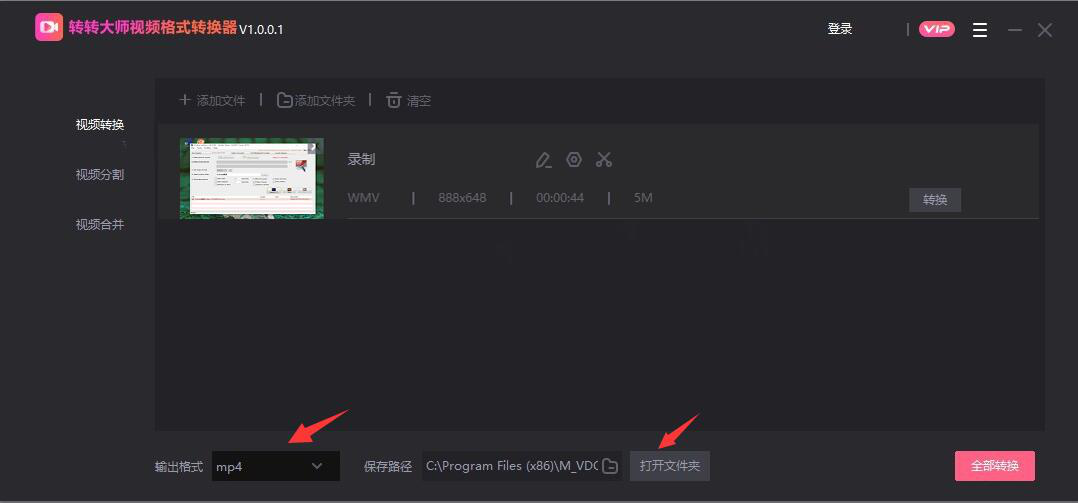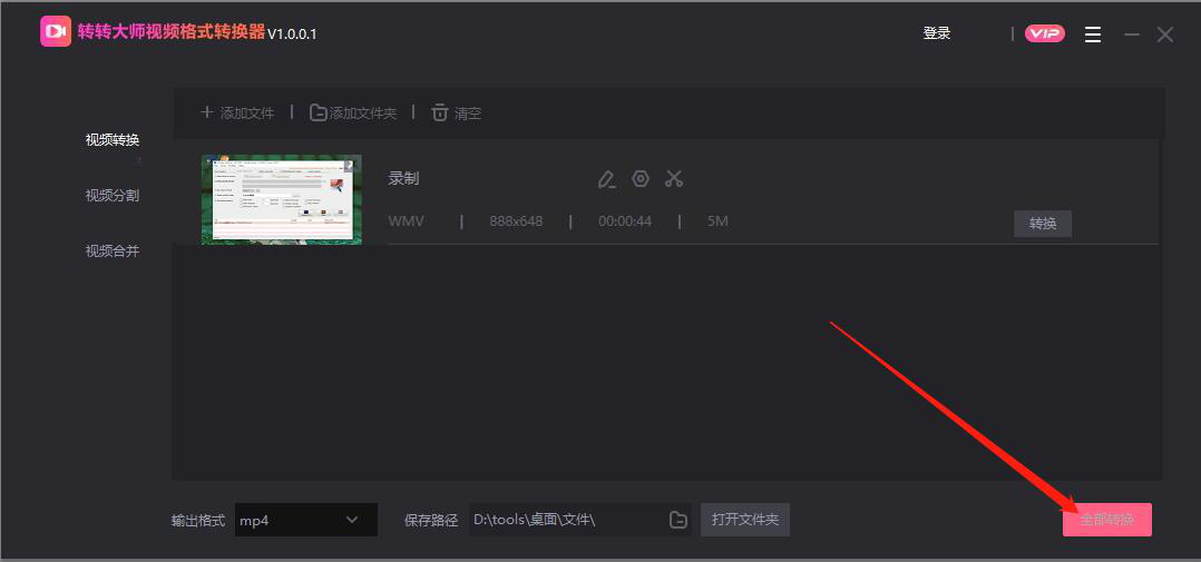 很多用户都喜欢将网上自己喜欢的视频下载下来,方便以后再次观看。可是在下载的过程中,往往会发现很多视频都是WMV的格式,可是,有些视频播放器和手机都不支持该格式。可以用转转大师视频转换器来解决这一问题,它可以将WMV转换成通用的MP4格式。可是没有接触过该软件的人不了解该怎么操作。所以,本文为大家讲解转转大师视频转换器如何将WMV转换成MP4格式,让自己随时随地看视频。 转转大师视频转换器如何将WMV视频转换成MP4格式? 1、首先,用户可以在本站下载安装转转大师视频转换器,安装后运行。  2、运行转转大师视频转换器的时候,在向导页点选“视频转换”。  3、然后,进入转转大师视频转换器的操作主界面,在界面左侧点击“视频转换”,并点击“+添加文件”。  4、此时,用户选择转转大师视频转换器转换的WMV文件,点击“打开”按钮,将其添加进来。  5、接下来,用户可以发现文件已经成功添加到转转大师视频转换器。用户需要选择输出的格式为MP4,并设置文件输出的路径。  6、最后,点击界面右下方的“全部转换”按钮,转转大师视频转换器便开始执行将WMV转换成MP4格式的指令。  转转大师视频转换器将WMV转换成MP4格式的过程中,用户可以将单个或者多个WMV文件同时进行转换为MP4格式。而且在开始转换前,建议不要将文件输出的路径定在系统C盘,以免影响了系统的运行速度。 -