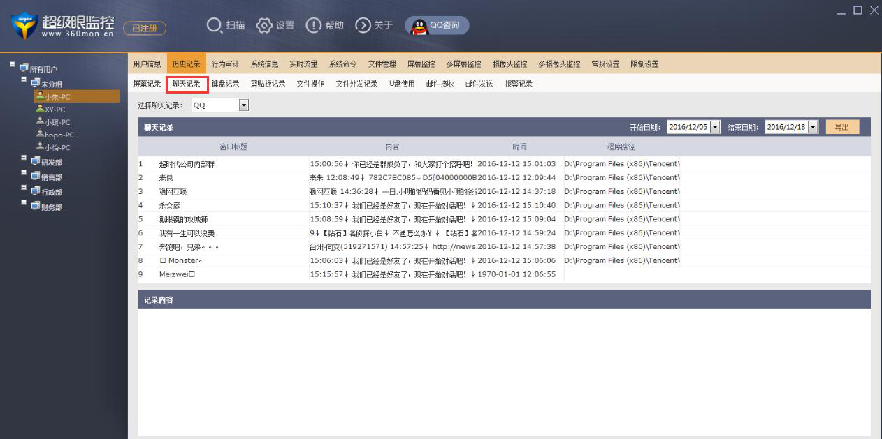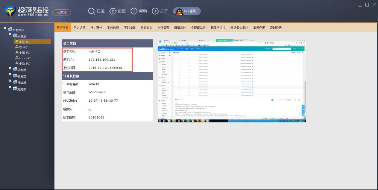 有的企业为了监督员工上班的行为,会在办公室里安装监控,但结果起不了规范化管理的效果。所以,现在更多的企业会在电脑端安装超级眼监控,实时了解员工有没有利用工作时间做些无关或者伤害企业的行为。  那么,没有使用过超级眼监控的企业用户,都想了解超级眼监控软件有哪些功能,看看超级眼监控是否能满足企业自身的监控需要。所以,本文将为大家讲解超级眼监控常用的功能有哪些,帮助大家做出正确的选择。 超级眼监控软件常用功能 1、超级眼监控查看员工信息 它可以查看员工端任何一位在线员工的信息,比如上线时间。因为很多企业都是打卡上班,而员工有时候会忘记打卡,所以人事部就可以以此为考勤的依据。  2、超级眼监控历史记录功能 聊天记录功能。超级眼监控的这个功能常会被用到。它的管理端可以直接查看员工的聊天记录,看看员工有没有利用上班时间聊与工作无关的事情。  屏幕记录功能。超级眼监控可以将屏幕的截图自动保存。管理员就可以通过这一功能快速了解员工有没有利用电脑做些工作以外的事物,比如有没有利用上班时间去接单赚外快。  3、超级眼监控实时监控功能 实时流量。很多企业都会设立IT部门。而工作中,有些员工会利用公司的网络下载与工作无关的大文件,从而拉低了整体的网络速度。超级眼管理端便可以通过这个功翠围珠绕拼音:cuì wéi zhū rào释义:翠翡翠;珠珍珠。形容富家女子的华丽装饰。亦比喻随从侍女众多。出处:明·兰陵笑笑生《金瓶梅词话》第四十六回听一派凤管鸾箫,见一簇翠围珠绕。”示例:无能来看具体是哪位员工,从而更好维护网络。  多屏幕监控功能。很多企业管理员都会用到这个多屏幕监控功能。因为它能同时查看多位员工电脑桌面,或者可以帮助抽检某些员工的实时工作情况。  4、超级眼监控权限设置功能 网址访问限制。有部分员工喜欢在上班的时候,利用公司的网络资源来购物、看视频、玩游戏。而管理员就可以通过这个功能设置有哪些网站不允许员工访问。  U盘限制使用。超级眼监控还有一个过人之处。就是它能限制U盘和电脑的连接。只有通过授权的U盘才能从公司电脑进行拷贝。这对于大企业来说,能有效防止公司数据被任意拷贝。  以上介绍的只是超级眼监控软件最常用的几个功能,超级眼监控能帮助提高企业的网络资源利用率和规范员工上班行为。 -