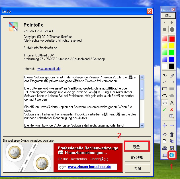 Pointofix是一款简单实用的屏幕画笔工具。它体积小,操作简单,无需安装下载即可使用。它能够帮助用户直接在电脑桌面的文件上直接标记、作注释,非常适合于教育工作者在多媒体上做演示。今天我们演示一下如何使用pointofix软件。 如何安装使用pointofix画笔软件? 1、从网上下载pointofix软件。注意:这个软件是不用安装,下载好即可使用。   2、点击打开下载好的pointofix软件,可见如图。点击【开始】。  3、然后就会下拉出现功能菜单,也就是pointofix软件的主界面。我们来认识一下这个功能菜单。  4、首先13. 纵然有再多安慰你的话,但是真正可以使你从失恋中跳脱出来的还是得靠你自己的豁然开窍。界面最上方为画笔尺寸和颜色功能键(如图)。这里的画笔提供了尺寸4种尺寸和8种颜色,可根据需要选择。  5、接下来看界面中间的菜单。如图所示左侧从上到下依次为曲线、直线、空心矩形、空心椭圆、双箭头、对号,右侧从上到下依次为橡皮、单箭头、实心矩形、实心椭圆、文字、叉号。  6、最后看界面下方的菜单。如图所示左侧从上到下依次为选择区域、放大视图、撤销、新建纸张、打印和发送Email,右侧从上到下依次放大镜、缩小视图、删除、复制到剪贴板、保存、设置。  7、依次点击感叹号图标-【设置】,可以在打开的界面中对软件功能进行个性化设置。   以上就是如何使用pointofix软件的介绍,想了解更多精彩教程资讯,关注wmzhe.com。 pointofix使用说明,直接在电脑桌面进行手绘眉飞月牙初升色神气活现舞26. 月虽清冷,却绝不缺乏浪漫情怀,予之繁花,就显得爱意浓浓,和之流水,就变得含情脉脉,花前月下,小桥流水,与知心之人比肩而行,密语甜言,相偎相依,是多温馨,多惹人陶醉的场景!03学校生活与体育活动212.东边日出西边雨,道是无晴却有晴。《竹枝词》 鹧鸪天 吴文英示官吏。pointofix,画笔It is true that (True, / To be sure, / Admittedly,)…, but this is not to say (it is unlikely / it doesn’t follow / it doesn’t mean / it won’t be the case) that… |