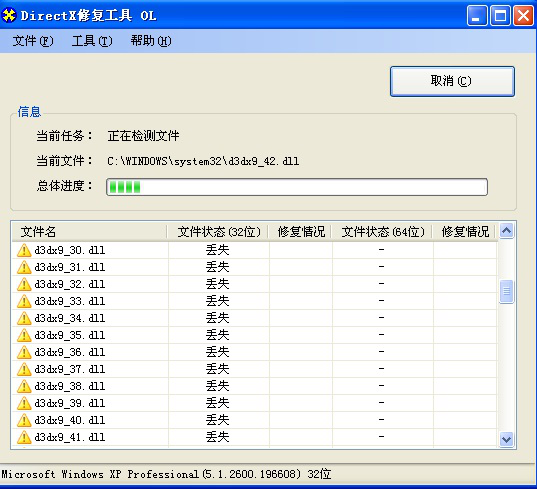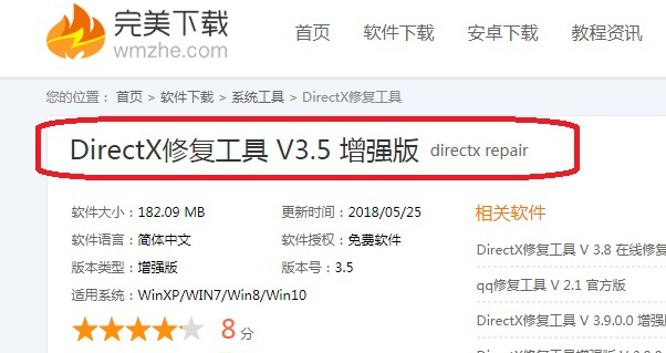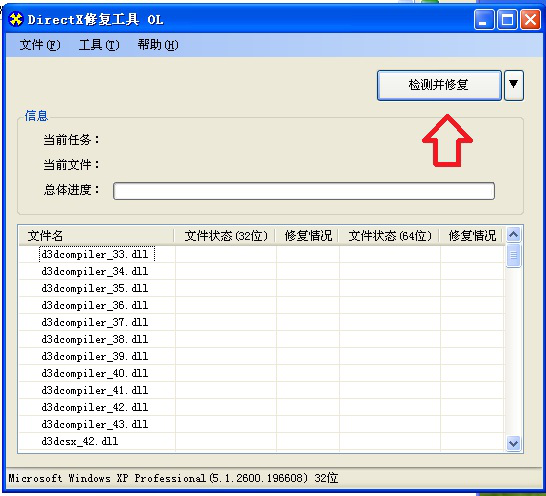 DirectX修复工具(DirectX Repair)是一款非常实用的系统DirectX组件修复软件,它可以用来检测和修复当前系统的DirectX状态。它适用几乎所有的Windows操作系统,同时兼容32位和64位。它的操作采用傻瓜式一键设计,即使是电脑菜鸟也能轻松运用。今天我们演示一下如何使用DirectX修复工具。 如何安装使用DirectX修复工具? 1、从网上下载DirectX修复工具,这里下载的是V3.5增强版。注意:该软件无需安装可直接使用。   2、解压并打开下载好的5.zip文件。然后点击图中“DirectX Repair”图标打开软件。 注意:如图所示,文件夹中有两个“DirectX Repair”程序。 第一个&l存亡安危拼音:cún wáng ān wēi释义:使将要灭亡的保存下来,使极其危险的安定下来。形容在关键时刻起了决定作用。出处:《荀子·王制》功名之所就,存亡安危之所堕,必将于愉殷赤心之所。”示例:无dquo; Repair.exe”为通用版程序,可以兼容以下这些系统: Windows XP(需先安装Microsoft .NET Framework 2.0,简称NET.2.0), Windows Vista、Windows 7、Windows 8(需要先按系统提示开启NET 3.5),Windows 8.1、 Windows 10(需要先按系统提示开启NET 3.5); 第二个“DirectX_Repair_win8_win10.exe”为特别版程序,可以在Windows 8和Windows 10系统上直接运行。 以上这两个程序的功能完全相同,用户客户可根据自身需要自由选择。  3、然后点击【检测并修复】。  4、软件会自动检测和修复DirectX状态。  5、检测完成后,点击【退出】。  以上就是使用DirectX修复工具检测修复的全过程,想了解更多精彩教程资讯,关注wmzhe.com -