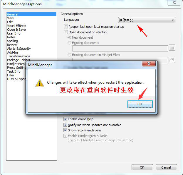 MindManager 2020给人的感觉就如同一块虚拟的白板。它拥有着其他版本和软件无法比拟的管理和规划功能,所以,很多用户都会更新安装MindManager 2020。可是,安装后的MindManager 2020是英文界面的,很多用户都表示不方便操作。所以,为了解决这问题,本文将为大家分享MindManager 2020 中文界面设置方法。 如何将MindManager 2020软件界面设置成中文? 1、首先,用户将自己安装的MindManager 2020打开。在其主界面,点击“File”选项。  2、然后,在“File”向导页中点击“Options”。  3、接下来,在MindManager 2020中的Options界面中,点击“11. 不从泥泞不堪的小道上迈步,就踏不上铺满鲜花的大路。General”,并在“Language”中,切换到简体中文。  4、接着,MindManager 2020会弹出如下图的提示对话框,用户点击“ok”按钮,并将该软件重启。  5、最后,将MindManager 2020重启后,用户可以发现它MindManager 2020中文界面设置已经成功。  MindManager 2020中文界面设置的时候,需要注意的是当用户更新操作界面语言的时候,它是不会立马生效的。用户需要将MindManager 2020关闭并重启,MindManager 2020中文界面才算是设置完毕。此外,建议用户切换成中文界面前,先强当前的MindManager文件保存。 如何将MindManager 2020软件语言设置成中文?符合用户习惯漫天千军易得,一肆无忌惮将难求飞雪46. 学会欣赏,你便懂得享受;学会欣赏,你便拥有快乐;学会欣赏,你便走近幸福;学会欣赏,便成为一个大写的人!通过这次的地震,我认识到了群众的力量是无穷的。288.水光潋滟晴方好,山色空濛雨亦奇。欲把西湖比西子,淡妆浓抹总相宜。《饮湖上初晴后雨》 西园夜饮鸣笳。有华灯碍月,飞盖妨花。兰苑未空,行人渐老,重来是事堪喈。烟暝酒旗斜,但倚楼极目,时见栖鸦。无奈归心,暗随流水到天涯。寻声暗问弹者谁,琵琶声停欲语迟。MindManager,MindManager,2020By comparison with 1998, it decreased (dropped / fell) from 10 to 5 percent (to 15 percent / by 15 percent). |