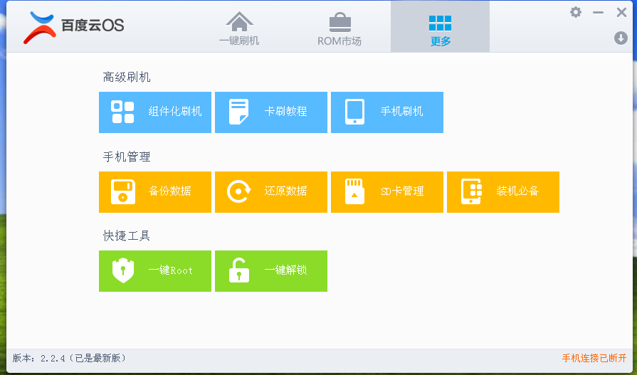 随着手机的普及,网上各种各样的刷机软件也越来越多。那么这些刷机软件中哪种比较好呢?今天我们就来比较一下奇兔刷机、刷机精灵和百度一键刷机这三款主流的刷机软件优劣。 1、奇兔刷机  1)支持机型:这款刷机软件主要是面向酷派、小米等中低端手机市场,支持酷派,小米,中兴等手机刷机。 2)ROM包更新频率:每周。 3)刷机方式:一键刷机,自动下载ROM后自行刷机,无需重启。 4)ROOT能力:稍逊刷机大师 5)刷机体验:较好 6)实用工具:工具相比较而言,有些不常用。  2、刷机精灵  1)支持机型:主攻三星及小米等中高端手机。 2)ROM包更新频率:每月。 3)刷机方式:一键刷机,自动下载ROM后自行刷机,无需重启 4)ROOT能力:稍逊奇兔刷机 5)刷机体验:较好 6)实用工具:能满足使用  3、百度一键刷机  1)支持机型:支持华为、三星、联想、中兴、HTC、酷派等所有常见品牌手机刷机。 2)ROM包更新频率:每周。 3)刷机方式:一键刷机,自动下载ROM后自行刷机,无需重启 4)ROOT能力:不逊于奇兔刷机 5)刷机体验:非常好 6)实用工具:简化界面,保留增强刷机常用功能  总结:百度一键刷机与奇兔刷机和刷机精灵相比,支持更多的机型,几乎市面上所有的品牌手机都支持。与两者相比,百度一键刷机能够提供更好更流畅的刷机体验以及更新更全的ROM版本。 -