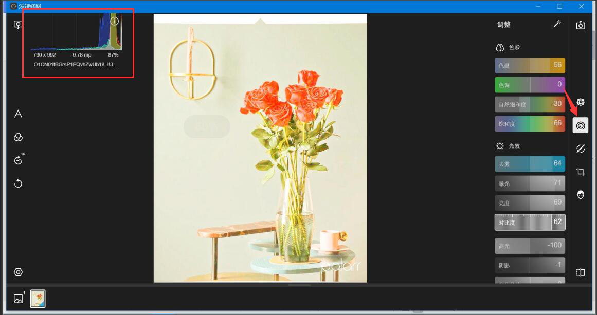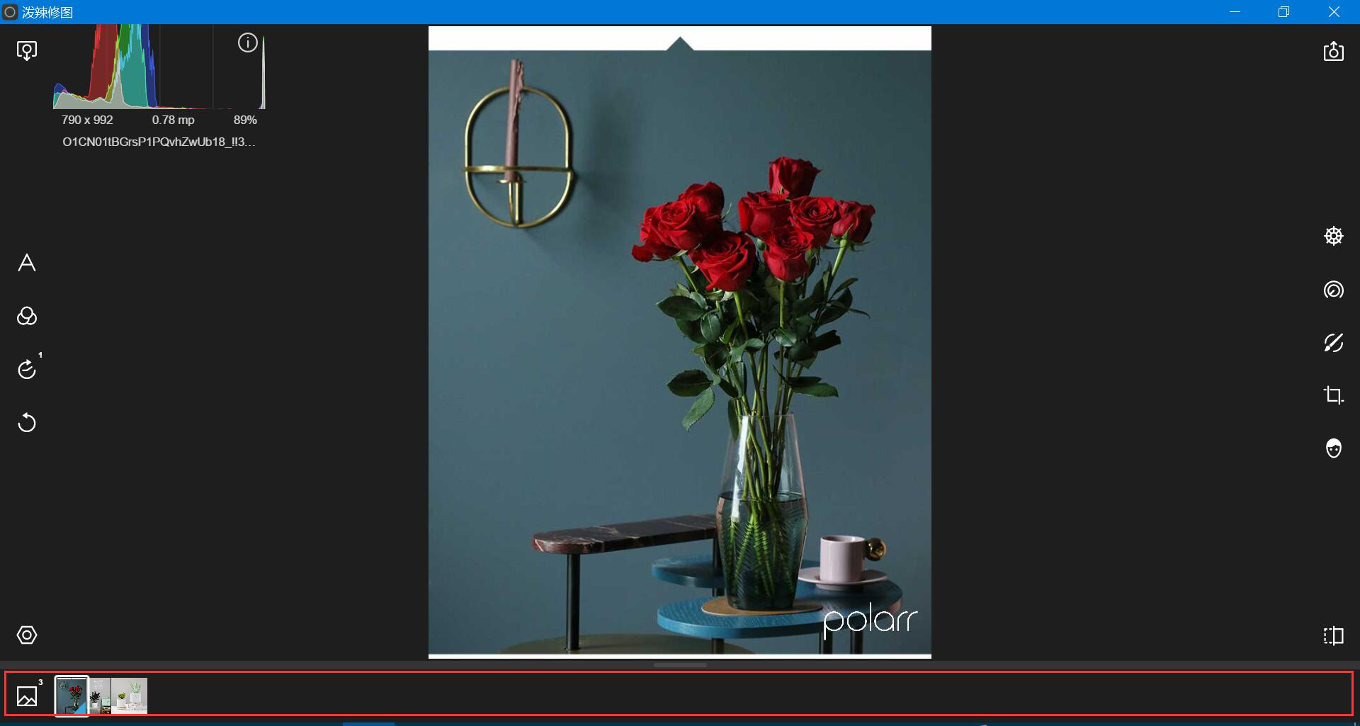 现在很多没有学习过平面设计的用户,在修图的时候都常常会用到泼辣修图。而对于新用户来说,怎么看直方图来判断对比度、曝光度?怎么用泼辣修图将图片批量导入导出?还有,如果后续要用手机修改的话,怎么修改?为了解决用户的这些问题,本文将和大家分享泼辣修图资深玩家教程,帮助新玩家轻松变成资深玩家,做出自己满意的图片。 泼辣修图使用常见问题 1、泼辣修图资深玩家用直方图判断图片的方法 首先,打开一张图片,当鼠标点击图片的时候,泼辣修图的界面就会出现一个直方图,如下图。可以看到直方图主要是在左侧凸起的,说明这张图片的亮度是不够的。  然后,在“调整”工具中,调节它的色彩、光效,提高它的画面22. 失恋算个啥?轻轻的,你走吧,千万别后悔,因为只要你一挥手,就会发现,已经有那等不及的意中人,正偷偷摸摸地拉俺的手!曝光度和对比度。但是图片失真,所以,还要进一步处理。  最后,当直方图中凸起的部分主要集中在中间区域的时候,说明该图的亮度和对比度都趋于正常了,此时,会看到图片明显更美观、自然。  2、泼辣修图资深玩家批量导入导出图片的方法 对于泼辣修图非资深玩家来说,可以这样批量导入导出图片。在自己运行的泼辣修图界面最下方,可以看到它有照片流的展示,用户可以一次性导入200张图片,非常地人性化。  将图片批量优化完毕后,还可以对点击泼辣修图右上角的“保存图片”。在它弹出来的保存向导页中,切换到“批量”,点选“批量保存”即可。  3、泼辣修图资深玩家后续用手机修图的方法 有时候,用户因为某些原因无法再继续在电脑上对图片进行编辑优化。就可以打开自己iPhone上的3D Touch。然后重压自己手机中下载的泼辣修图APP图标进入泼辣修图。  进入泼辣修图后,用户可以继续对自己没有完成优化的图片进行编辑修改。泼辣修图资深玩家还可以在图库中预览,让它变成全屏演示。  很多修图软件都实现不了图片的批量导入导出,也实现不了电脑手机无缝同步修改的功能,而泼辣修图却能实现。用户如果想将图片优化得更精美,那建议在修图过程中要留意直方图的数据和变化。 -