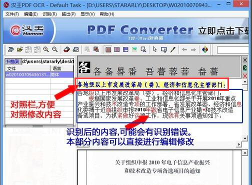 对于文案工作者来说,每天都要在网络上搜集很多的图文素材。很多时候找到的一些图片,看到图片上的文字描述得很优秀,想将它转文字记录下来作为后续的文字素材使用。可是,图片上的文字是不支持复制的,为了解决这一问题,可以使用汉王ocr将图杯弓蛇影拼音:bēi gōng shé yǐng释义:将映在酒杯里的弓影误认为蛇。比喻因疑神疑鬼而引起恐惧。出处:汉·应劭《风俗通义·世间多有见怪》时北壁上有悬赤弩照于杯,形如蛇。宣畏恶之,然不敢不饮。”示例:金玦厖凉含隐痛,~负奇冤。★清·黄遵宪《感事》诗片转文字。汉王ocr是办公人员常用的文字识别软件。用户可以用汉王ocr快速地将图片转文字。但是也有很多新用户不了解怎么操作,所以,本文来讲解下汉王ocr怎么图片转文字。 汉王ocr如何将图片转文字? 1、首先,用户将自己下载的汉王ocr文字识别软件打开。点击其界面左上方功能栏中的“文件”图标,将要转文字的图片导进来。  2、然后,在汉王ocr中,左侧列表中会显示图片的属性信息,而右下侧界面则会显示该图中的文字内容。用户需要点选准备识别的图片,再用鼠标选取需要汉王ocr识别文字的区域。  3、接下来,用户点击汉王ocr功能栏中“开始识别”按钮图标,如下图。汉王ocr便开始执行将图片转文字的指令。  4、此时,用户可以看到图片的文字内容已经被汉王ocr识别出来了。用户可以对照右下侧的图片预览,看看汉王ocr将图片转文字有没有识别错误的地方,如果有的话,那么用户可以直接对它进行编辑修正。  5、最后,将文字内容修改完毕后,用户可以将它导出来保存到自己设定的输出路径上。  汉王ocr将图片转文字的过程中,用户可以一张张图片转文字,也可以多张图片一起转文字,非常的人性化。不过要注意的是,如果图片是比较模糊的话,那么汉王ocr将图片转文字的识别结果,可能出错率也会相应增多,所以,尽量选清晰的图片。 汉王ocr如何将图片转文字?日常办公必备软件防不胜防日影西一览无余斜34. 在人生的旅途中,有些意外的风雨是十分自然的,只要你寻觅的眼睛没有被遮蔽,继续认真地去寻找,相信你必须会找到通向成功的道路。我衷心感谢你为我和我家人所做的一切。汤显祖367.良辰美景奈何天,赏心乐事谁家院。《牡丹亭》 从别后,忆相逢,几回魂梦与君同。今宵剩把银釭照,犹恐相逢是梦中。死别已吞声,生别常恻恻。汉王ocr,文字识别22、Youth will be served. |