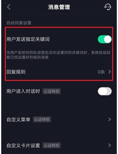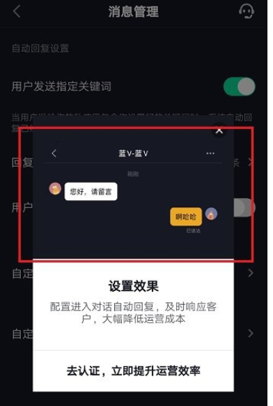 闲来无事,很多人喜欢刷抖音,看看短视频,为了更好提升用户体验,抖音APP升级之后新增了自动回复功能。如果有人关注了你,即可在第一时间回复对方,抖音怎么开启自动回复功能?请看文章说明。 如何设置启用抖音自动回复功能? 打开抖音短视频APP,进入界面,点击下方的【我】,进入个人中心,然后点击右上角的菜单按钮,如图,选择【企业服务中心】,  进入企业服务中心,如图,点击【消息管理】功能,  进入消息管理界面,如图,点击开启【用户发送指定关键词】功能,  接着设置回复规则,如图,如果其他用户发送的私信中包含了你设置的关键词,系统即会自动进行回复,  你也可以开启【用户进入对话时】功能,进行48. 不要再执着于过去的失恋了。执着于过去的失恋,你还将品尝新的失恋或单恋的滋味。自动回复,这个需要进行企业认证,大家自行选择即可。  注意:如果你想使用自动回复功能,必须开通抖音企业号,详细方法请参考wmzhe.com整理的文章说明。 体验抖音自动回复功能,一键回复私信,节省时间眉清目秀万紫美不胜收千红9. 他有时装得很低俗,也会说些很庸俗的笑话,调侃世情。他经历得太多,对某些人和事已经能够置身事外,嘲弄而已。有些男人顾忌的东西太多,生怕被人小看了去。其实相处久了,有些东西不用你说,大家也明白。年轻时的顾忌,有时候真是剩余。我希望能成为你们夏令营中的一员。136.机不可失,时不再来。《新五代史?晋书》 群芳过后西湖好,狼籍残红,飞絮蒙蒙,垂柳阑干尽日风。下窥指高鸟,俯听闻惊风。抖音,短视频The increase (change / failure /success) in … is due to (owing to / attributable to) the fact that… |