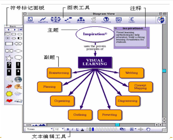 相信很多做策划的职场白领或者老师对inspiration这款软件都不会感觉到陌生。它是一款思维导图工具。日常工作中,我们可以用它替代纸和笔,直接用它来将我们的思路画出来,也能帮助我们理清不同事物间的联系。可是,很多新用户却不懂inspiration怎么用,所以,本文来分享inspiration的用法,帮助大家更快理清思路和方便后续的记忆。 如何使用inspiration绘制思维导图? 先来介绍inspiration几款工具。如下图,它们的用途依次是提纲视图转换、快速创建概念图框、按照相应的方位创建概念图框、建立不同概念图框的连接、选择概念的排列结构形式。  此外,用户使用inspiration软件做思维导图时,最常用到的是如下图的图标工具和大纲工具。   熟悉它的工具后,我们来详细讲解inspiration怎么用。 1、首先,用户用inspiration时,要建立一个主题概念。在操作界面的其他空白处单击鼠标,当出现“+”的符号提示时,为新的子主题概念进行命名。  2、如果用户感觉自己建立的概念图不够的时候,可以通过复制粘贴的方式将外部的图形导入inspiration中,用它来作为框图的符号。例如下图的书本图形就是导进来的概念图。  3、然后,用户需要将不同的概念进行连接。点击inspiration“图标工具”里的“Link”按钮便可建立概念间的联系。此时,用户可以在连线上输入两者的关系。  4、当建立17. 我想当幼儿园老师,像妈妈一样,管着一群小朋友,能唱会跳还会画画弹琴,关键小朋友都听老师话。好概念之间的关系后,用户还可以在inspiration中修改线条。比如说修改线条的形式。比如,在上一步时,连的线条箭头是单向的,这一步,我们可以将它改成双向的。  5、同时,用户还可以在inspiration中编辑文字和框图。选中某个框图,点击“文本编辑工具”,修改文字和字体颜色。  6、inspiration使用时,有个很人性化的地方。就是它可以为概念添加注释。我们选中“主题概念”,再用鼠标点击工具中的“Note”,在它弹出的文本框中,键入自己要的文案内容即可。  7、用inspiration做好思维导图后,用户可以将它分享到网页、发邮件等等。  inspiration的使用方法还是比较简单的,inspiration使用时必须先建立主题概念,再建立子主题。思维导图做好后,记得点击文件中的保存,将文件保存起来。 -