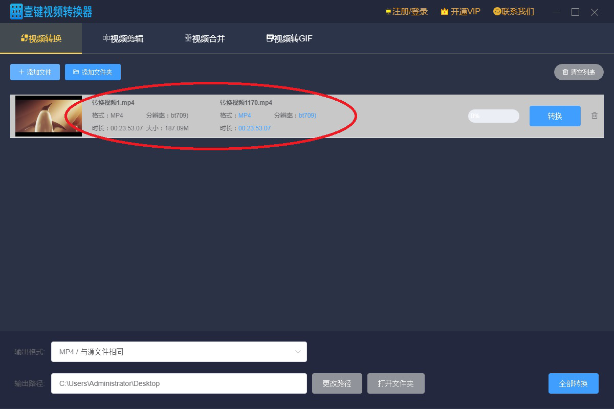 壹键视频转换器是一款支持手机视频与电脑视频格式互转的视频转换工具,它能够实现多种超清视频的无损转换,而且它还具有强大的视频编辑功能,再加上它界面人性化,转换方便快捷,非常适合初学者使用。今天我们就通过演示一个视频由MP4格式转换成AVI的过程,来学习如何用壹键视频转换器对视频进行格式转换。 壹键视频转换器如何转换视频格式? 1、双击电脑桌面中图标(如图),进入壹键视频转换器软件。  2、进入壹键视频转换器主界面。单击选取界面左上方【视频转换】,然后点击【添加文件】,将需要转换的视频添加进来。 注意:如图所示,有三种方法可以添加需要转换文件。  3、将需要转换的视频添加进来之后,可以看到这个视频的属性。  4、选择输出视频的格式。按照如图步骤依次选择【AVI】,然后分辨率选择【超清1080P】。  5、设置输出路径。点击【更改路径】,按照自身需要,选择输出文件要保存的位置。  6、点击图中【转换】,然后耐心等待,当进度条变成100%时,视频就转换完成了。 注意:如果是批量转换,可以点击图中【全部转换】。  用壹键50. 失恋了,好似上帝再给你一次重新选择的机会,让你看清对方,看清自己。让你知道自己真正想要的是什么。视频转换器将视频由MP4格式转换成AVI的过程就给大家分享到这里。其他格式的转换和这个流程是一样的,大家可以参照来加以学习!想了解更多精彩教程资讯,记得关注wmzhe.com。 -