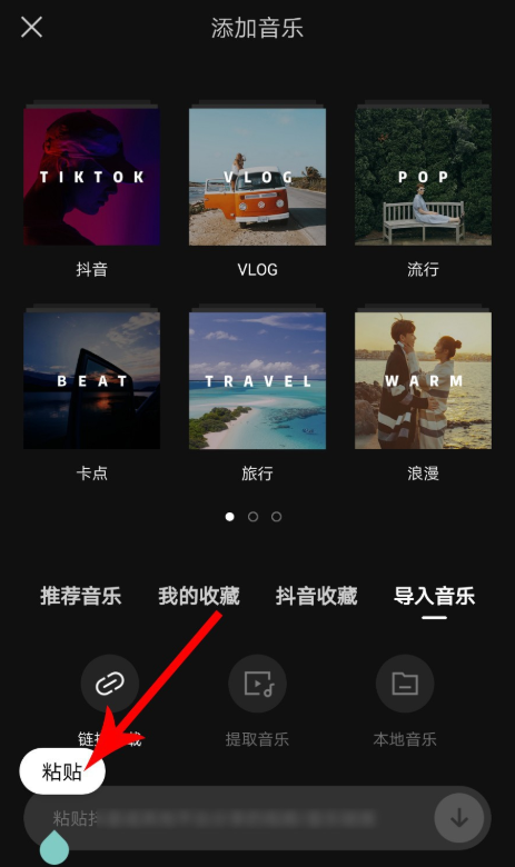 拍摄了一个短视频,在后期处理过程中可以使用剪映APP添加合适的音乐,剪映提供了多种音乐导入方式,重复满足用户需求。本文简单介绍了使用剪映添加视频音乐的操作方法,有需要的小伙伴可以参考。 如何使用剪映APP给视频添加音乐? 在手机中打开剪映APP,进入首页,点击【开始创作】,  进入手机图库,找到需要处理的视频,点击勾选,然后点击【添加到项目】,  视频导入成功,进入剪辑窗口,如图,点击【添加音频】,接着点击下方的【音乐】选项,   进入添加音乐界面,如图,这里有四种选择,分别是【推荐音乐】、【我的收藏】、【抖音收藏】、【导入音乐】,点击【导入音乐】,  如图,这里有三个选项,分别是【链接下载】、【提取音乐】、【本地音乐】;点击【链接下载】,复制抖音音乐链接,然后在村夫野老拼音:cūn fū yě lǎo释义:旧指生活在农村的农民和老人。出处:明·焦竑《玉堂丛语·行谊》周文襄公忱巡抚江南时,尝支驺从入田野间,与村夫野老相语,问疾苦。”示例:无输入框中进行粘贴,点击白色箭头,   进入以下界面,即成功获取抖音音乐,点击【使用】,现在就能将这段音乐添加到视频中。   使用剪映添加视频音乐的方式还有很多,大家可以一一尝试。想了解更多精彩教程资讯,请关注wmzhe.com。 -