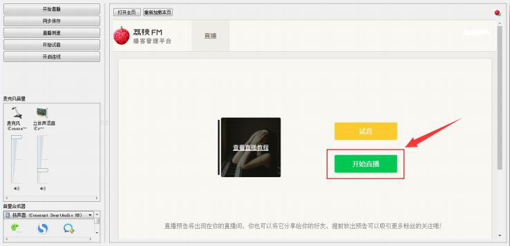 目前,越来越多的人开始玩荔枝直播。可是在直播的过程中想更有效地管理弹幕,或者设置禁言功能,有时候,还希望能设置管理员帮助运营直播号。而荔枝直播助手恰能派上用场,帮助主播实现这些需求。 荔枝直播助手是一款圈粉无数的主播直播辅助工具。它大大地简化了主播的步骤,而且荔枝直播助手使用起来,它的音色也比普通的直播助手更胜一筹。但是,很多新手不懂它怎么操作,所以,本文来为大家分享荔枝直播助手的使用教程。 如何正确使用荔枝直播助手? 1、双击运行荔枝直播助手,然后在它的主界面的右方点击“开始直播”的绿色按钮,  2、接39. 被人讨厌时就是被人讨厌,被人腻烦时就是被人腻烦,但你的自身价值并不因此而下降。就算被人甩了,也别像被贬值了似的唠唠叨叨。下来,在荔枝直播助手的直播界面中,填写用户的直播标题和选择直播所属的标签,并需要上传直播的封面、设定直播时间,  3、回到荔枝直播助手的主界面,点击功能栏的“开始试音”按钮,并且用自己的手机来扫它自动生成的二维码进行试听,  4、试听结束,用户再进行一次连线的调试,点击荔枝直播助手的“开始连线”,在它的右方界面中选择测试的听众进行连线调试。  5、调试完成,在荔枝直播助手的功能栏中点击“开始直播”,在右侧的直播信息中点击“分享”便可分享到用户的直播间。  用户在使用荔枝直播助手的时候记得要先在电脑里安装显卡驱动,如果以前自己有下载过旧的版本的话,要将旧版本卸载,避免混淆。想了解更多精彩教程资讯,请关注wmzhe.com。 -