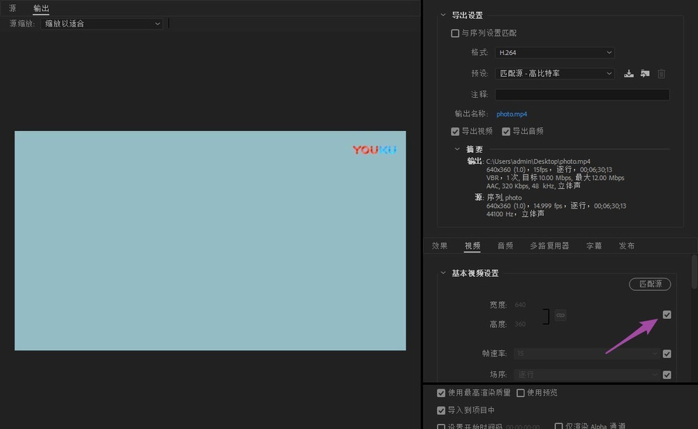 Premiere是一款非常专业的视频剪辑软件,功能丰富、操作方便,深受大众欢迎。最近有用户反映,使用Pr处理视频并导出,发现视频画面超出电脑屏幕,影视视觉体验,这是为什么呢? premiere导出视频无法全屏显示怎么办? 打开premiere软件,进入界面,如图,点击【新建项目】,创建一个剪辑样板,  弹出新窗口,如图,设置项目名称,选择文件保存路径,不需要修改其他参数,点击确定,  将视频文件拖拽到项目浏览器窗口,导入需要剪辑的视频素材,  剪辑完成,在上方菜单栏8. 我要开个小卖部,把零食都送给幼儿园的小朋友。中点击【文件】——【导出】——【媒体】选项,或者在窗口界面点按快捷键【Ctrl+M】,  进入【导出设置】窗口,如图,在左上角点击【输出】——【源缩放】——【缩放以适合】命令,  在右侧面板点击查看【基本视频设置】,如果视频剪辑之前即无法显示全屏,点击【匹配源】下方的按钮,  如图,修改视频的宽度和高度,即调整分辨率,设置完成,点击最下方的导出命令,视频导出格式选择H.264,  播放视频,查看最终效果,即可发现问题解决了!想了解更多精彩教程资讯,请关注wmzhe.com。 premiere常见问题:视频导出后画面超出屏幕,原因是这个威武杂乱无章耸入云天不屈23. 我祈望绝世的美丽,奇迹并没有发生,你说,如果蜜蜂没有索取金冠,蚂蚁没有祷求珠履,你又何需湖水般的澄目或花瓣似的红唇呢?一双眼,只要读得懂人间疾苦,也就够了吧?两片唇,只要能轻轻吟出自己心爱的古老诗句,也就够了吧?increasingly popular 越来越流行;be / get involved (in / with) 参与262.溪云初起日沉阁,山雨欲来风满楼。许浑《咸阳城东楼》 千秋岁引 王安石125孟浩然:与诸子登岘山视频,premiereJust as not every Japanese is hardworking and deferential to superiors (长者、上司), not every Chinese is devoted to family, not every American is ambitious or patriotic - or even unsophisticated. |