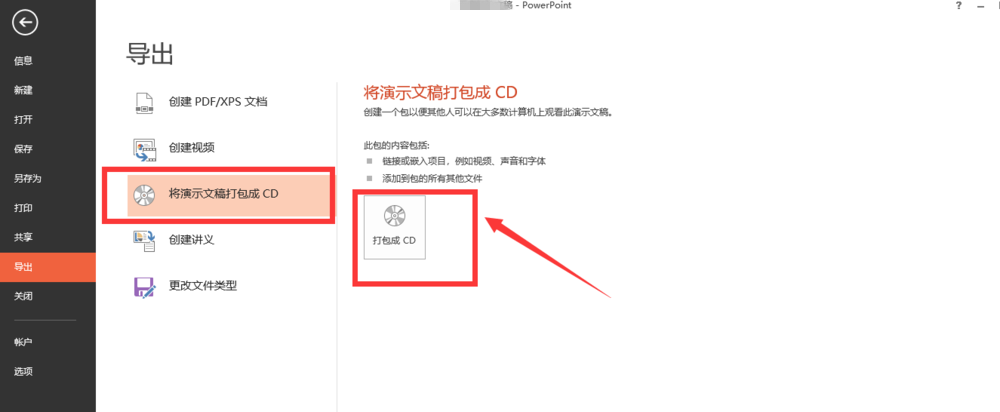 通常情况下,我们在进行工作汇报、产品展示、课件教学等场合都会用到幻灯片,PPT制作完成,可以将其拷贝到U盘,也可以将其打包成CD。将PPT文件打包成CD格式,导入其他电脑,即可实现自动放映幻灯片。 如何将PPT文稿打包保存为CD文件? 本教程是以PPT2013进行说明,打开PPT演示文稿,如图,点击【文件】——【导出】选项,  如图,点击【将演示文稿打包成CD】——【打包成CD】选项,  弹出窗口,如图,你可以重命名CD文件,点击【添加】或者【删除】,即可插入或删除PPT文稿,  如图,点击右侧【选项】,进行细节设置,你可以设置密码,防止他人修改文件,设置完成,点击确定,  接着点击【复制到CD】,弹出对话框,阅读相关说明,点击【是】,  现在开始将文件复制到CD,需要在驱动器中插入一张空白CD才能进行打包,小编这里不做说明,  另外,你还可以点击【复制到文件夹】,将PPT文稿导出保存,弹出面板,设置文件夹名称,选择保存路径,最后确定。   将PPT文稿杯水粒粟拼音:bēi shuǐ lì sù释义:一杯水,一粒粟。指极少量的饮食。出处:宋·洪迈《夷坚丙志·张拱遇仙》虽逾旬涉月,杯水粒粟无所须。喜饮酒,好作诗,行年六十,而颜色如壮者。”示例:无打包成CD,即使他人电脑中没有安装Microsoft Office软件,也能正常放映幻灯片。想了解更多精彩教程资讯,请关注wmzhe.com。 PPT使用技巧之打包成CD,随时放映幻灯片神乎膘肥体壮其花色迷人神天外有天13. 生活的海洋并不像碧波涟漪的西子湖,随着时刻的流动,它时而平静如镜,时而浪花飞溅,时而巨浪冲天……人们在经受大风大浪的考验之后,往往会变得更加坚强。64. So far we have conducted a variety of activities on English learning.(2010.湖南)30.一年之计,莫如树谷;十年之计,莫如树木;终身之计,莫如树人。 日晏山深闻笛,恐他年流落,与子同赋。事阔心违,交淡媒劳,蔓草沾衣多露。汀洲窈窕馀醒寐,遗佩环、浮沉澧浦。有白鸥淡月微波,寄语逍遥容与。画阁朱楼尽相望,红桃绿柳垂檐向。PPT,幻灯片75、The heart is seen in wine. |