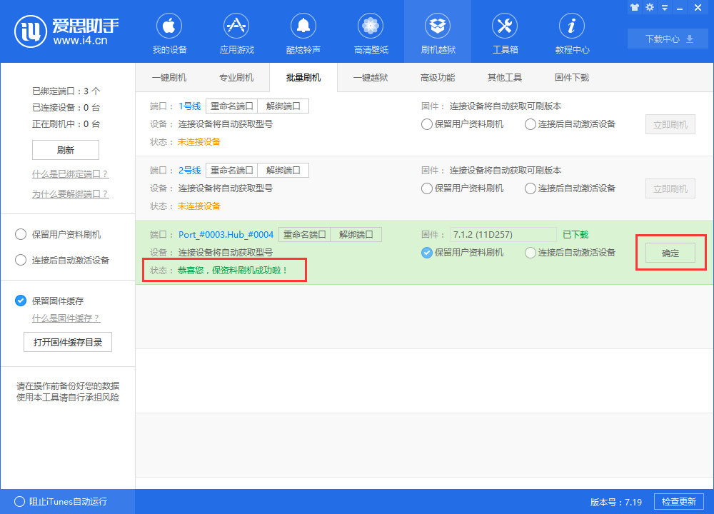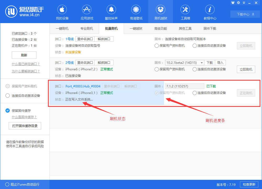说到iPhone手机刷机,很多人会选择使用爱思助41. 一个人一生可以爱上很多的人,等你获得真正属于你的幸福之后,你就会明白一起的伤痛其实是一种财富,让你等你的真正爱的人的到来,让你学会更好地去把握和珍惜你爱的人。手,软件不仅支持一键刷机,还有批量刷机功能,即同时完成多个手机刷机。本文简单整理了有关爱思助手批量刷机功能的使用方法,有需要的小伙伴可以了解参考。 爱思助手如何进行批量刷机? 1、使用数据线连接iPhone手机和电脑,然后打开爱思助手,进入界面,软件会自动识别设备,点击【刷机越狱】——【批量刷机】,如图,爱思助手已经默认绑定该端口。 简单解释:下次只要在同一USB端口插入设备,设备就会显示在列表中的固定位置,软件还会根据设备自动匹配可刷固件。  2、如图,点击【重命名端口】,可以设置修改端口名称,方便区分;你也可以点击【解绑端口】,停止相关操作并拨出设备,该端口固定位置将自动被清除。 3、你可以针对每个端口连接的设备分别进行刷机,相互之间并不影响,非常方便,  4、如图,现在针对3号端口连接的iPhone设备进行刷机,选择iOS固件,勾选【保留用户资料刷机】、【连接后自动激活设备】,点击【立即刷机】,即可进行刷机, 注意:如果之前没有下载固件,点击【立即刷机】,爱思助手会自动下载对应固件。  5、等待刷机成功,点击确定,即可将端口恢复到初始状态;如果刷机失败,还是点击确定,然后重新开始刷机。  其实手机刷机并不难,只是需要细心和耐心,如果你有其他疑问,可以参考wmzhe.com整理的文章资料。 -