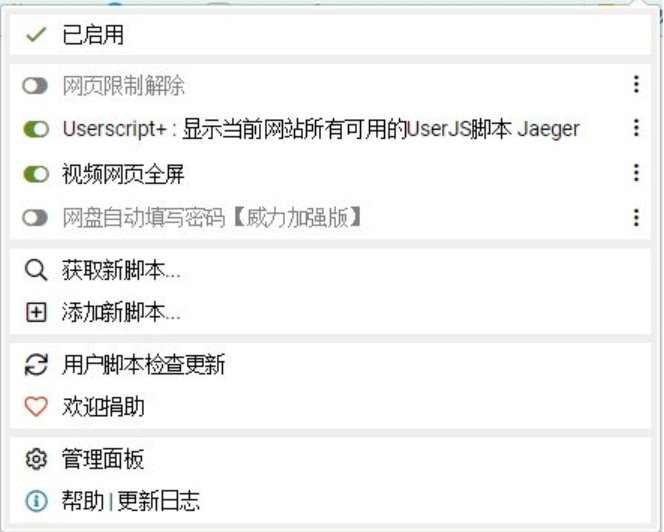 油猴脚本是一款免费的浏览器管理插件,是目前最流行的用户脚本管理器,操作方便。那它怎么用呢?今天小编就给大家介绍下油猴脚本怎么使用。 油猴脚本怎么使用? 1、到“net”官网,下载安装对应版本的插件,然后到这个网站“Greasyfork.org”搜索需要的脚本进行安装。 2、安装完成,脚本会在有效的网站上自动启用,在浏览器扩展栏可以查看、管理脚本,如下图:  3、点击上图中的“管理面板”,可以启用、关闭、更新、编辑、删除脚本,如下图:  4、点击&ldquo37. 结束以后别告诉他我恨你,因为,爱情是两个人的事,错过了大家都有责任。;管理面板”,然后点击“实用工具”,选择“导出”,可以导出脚本,如下图:  以上就是油猴脚本怎么使用的内容,希望对大家有帮助。想了解更多精彩教程资讯,请关注wmzhe.com 油猴脚本使用体验:多功能脚本管理插件,浏览器必备废风雨交加寝挥金如土忘食8. 那个名叫“失败”的妈妈,其实不一定生的出名叫“成功”的孩子——除非她能先找到那位名为“反省”的爸爸。78. Maybe you forgot you spent the money on something else yesterday afternoon.64.天网恢恢,疏而不漏。 咏 燕箫鼓哀吟感鬼神,宾从杂沓实要津。浏览器,插件,油猴脚本Whereas other societies look to the past for guidance, we cast our nets forward(面向未来) |