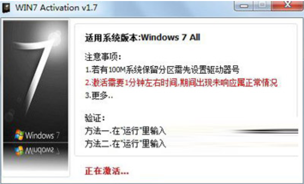 win7 activation是一款操作方便的win7激活工具,支持所有版本的win7系统。那它怎么用呢?今天小编就给大家介绍下win7 activation怎么用。 如何使用win7 activation激活工具? 1、打开电脑上安装的“win7 activation”软件,点击“激活”,如下图:  2、开始激活,过程需要1分钟左右,如下图:  3、激活完成后会弹出“提示”界面,点击“是”即可,接下来电脑会重启,重启后就可以电脑系统激活了,如下图:  以上就是win7 activation激活工具使用教程,操作简单,大家可以试垂头塞耳拼音:chuí tóu sāi ěr释义:指不问不闻,装聋作哑。出处:《后汉书·殇帝纪》刺史垂头塞耳,阿私下比,‘不畏于天,不愧于人’。”示例:谏诤之徒,以正人君之失尔,必在得言之地,当尽匡赞之规,不容苟免偷安,~。★北齐·颜之推《颜氏家训·省事》试哦。想学习更多更安全的系统激活方法,请关注wmzhe.com。 -