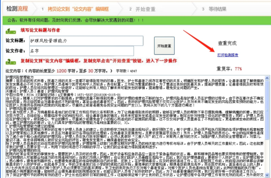 PaperPass是一款免费的论文查重软件,操作方便,深受学生欢迎。目前很多论文是需要在知网查重的,为了降低论文重复率,很多学生会使用PaperPass先查重一遍。那它怎么用呢?今天小编就给大家介绍下论文查重软件PaperPass怎么用。 如何使用Paperpass进行论文查重? 1、打开电脑上安装的“Paperpass”软件12. 说分手的时候不好吵闹。毕竟两个在在一齐那么久,分了他也会难过,只是他比较明智,不想束缚你的或他的明天。好聚好散,以后,还是朋友。,它的运行界面如下图:  2、在运行界面输入论文的标题、作者名,复制粘贴论文内容,然后点击“开始查重”,如下图:  3、查重结束后,可以看到重复率为77%,可以点击“打开检测报告”,查看检测报告,如下图:  以上就是论文查重软件PaperPass怎么用的内容,操作简单,大家可以试试哦。 PaperPass使用体验,论文查重准确率高口绿水过眼云烟青山出不逊28. 金黄的向日葵,碧绿的白杨树,紫红的喇叭花,还有数不尽的鲜花嫩草,都像俊俏的小姑娘戴上了美丽的珠宝,显得更加生机勃勃。63. I decided on science as my main subject of study. The reasons are as follows.(2012.安徽)231.不是花中偏爱菊,此花开尽更无花。《菊花》 驿外断桥边,寂寞开无主。已是黄昏独自愁,更著风和雨。相望始登高,心随雁飞灭。PaperPass,论文查重10、Thoughts are free from toll. |