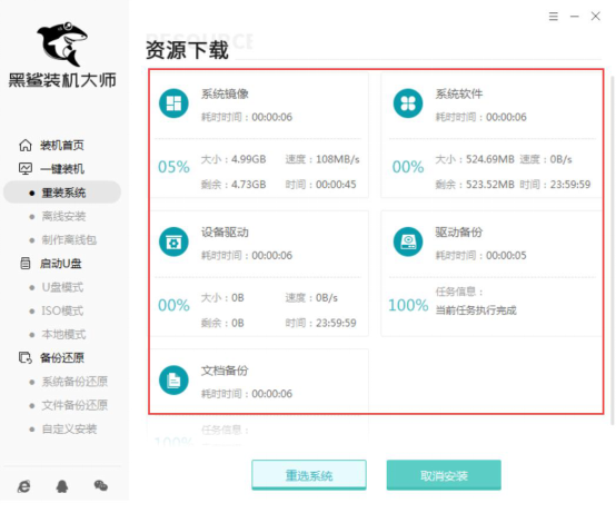 有些用户因为电脑系统的某些重要驱动程序受损,导致电脑无法正常使用,而且又没有办法以一般的方法对其进行修复,只好利用14. 生活中少不了不如意,每每这时不妨想想自己那甜如蜜的爱情、深如海的亲情、醇如酒的友情,拥有这些还不够吗?其实,这些才是自己最坚固的后盾。黑鲨装机大师来重装系统。也有些用户因为电脑系统过于陈旧,于是让黑鲨装机大师重装系统,让电脑运行更流畅。可是,对于没有使用过这款软件的用户来说,怎么重装系统却成了难题。所以,下面将详细讲解黑鲨装机大师怎么重装系统。 黑鲨装机大师如何重装电脑系统? 1、用户可以在本站下载黑鲨装机大师,安装并运行。在运行后的主界面,点击“一键装机”菜单下的“重装系统”。黑鲨装机大师便会展示当前电脑用户的系统配置。点击“下一步”按钮。  2、接着,黑鲨装机大师会弹出“选择系统”的界面。用户需要从中选择所要重装的系统。例如,本教程中是要重装Win7系统。那么,我们就需要从四大系统中点击“windows7”。 在Win7系统中,又分为企业版、家庭版、专业版、旗舰版、初级版。这里选择“旗舰版64位”。选好系统后,用户可以发现在系统的图标中,会有“已选择”的提示。之后,点击“下一步”。  3、黑鲨装机大师重装系统,有一个非常人性化的方面,就是它具有备份的功能。用户可以选择需要备份的文件资料,之后点击“开始安装”的按钮,进入重装系统的下一步操作。  4、接着,黑鲨装机大师便开始将所选择备份的文件资料、系统软件等进行资源下载,用户可以清晰地从中查看下载的进度。  5、上一步资源下载完毕后,黑鲨装机大师便开始进行重装系统的安装部署工作。部署成功后,用户要将电脑重启。这样,黑鲨装机大师重装系统才能成功。  6、重启后的电脑,用户可以选择启动的模式。一般情况下,我们选择PE模式,如下图。  7、接下来,黑鲨装机大师会进入PE模式桌面。桌面会自动弹出重装系统的进度界面。此时,用户无需进行任何手动操作,黑鲨装机大师会自行完成重装系统的操作。  8、一般等待几分钟后,黑鲨装机大师重装系统的操作界面会提示安装完成。用户需要点击“立即重启”再次重启电脑,电脑重启完成后,会自动进入重装后的Win7桌面。  黑鲨装机大师重装系统前,用户需要将电脑上的所有杀毒软件关闭。否则,杀毒软件会将黑鲨装机大师误以为是病毒而拦截,导致用户无法重装系统。想了解更多精彩教程资讯,请关注wmzhe.com。 -