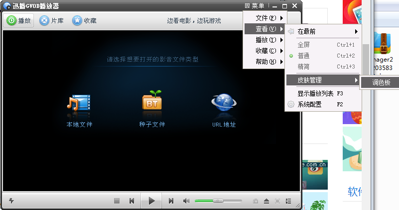 迅播,即迅播GVOD播放器,这是一款体积小巧、设计简约的影视播放软件,采用超线程网络传输技术,支持高清点播,深受大众欢迎。本文简单整理了有关迅播播放器的使用方法,大家可以进行参考。 迅播GVOD播放器使用方法 如何使用迅播播放影视剧? 下载安装迅播GVOD播放器,打开软件,进入主界面,你可以看到【本地文件】、【种子文件】和【URL地址】选项,  点击【本地文件】,弹出窗口,选择本地视频文件,然后点击【打开】,即可播放视频,  点击【URL地址】,弹出对话框,输入相关媒体文件的URL地址,输入完成,点击【确定】,即可播放影音电视,  如何更换迅播软件界面皮肤? 打开迅播播放器,进入主界面,点击上方的【菜单】选项,选择【查看】——【皮肤管理】——【调色板】,  打开【皮肤调色板】,自行调节色调、饱和度、亮度,然后点击确定,  皮肤更换成功,如图所示,  想了解更多精彩教程资讯,请关注wmzhe.com。 -