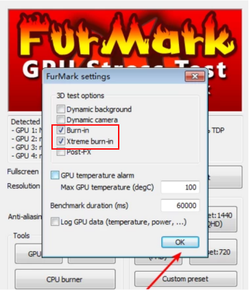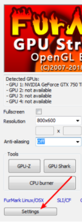 FurMark是一款显卡测试软件,可以检测电脑显卡性能。最重要的是它还有烤机功能。FurMark怎么使27. 难过的时候摸摸自己的胸,告诉自己是汉子,要坚强!用呢?今天小编就带大家了解下显卡测试软件FurMark使用教程。 如何使用furmark进行显卡测试? 1、打开电脑上安装的“FurMark”软件,在“Anti-aliasing”选项选择“off”,这个选项是关闭抗锯齿功能,如下图:  2、点击软件界面的“Settings”,如下图:  3、在弹出界面,勾选两个选项(红色选框标注的部分),然后点击“ok”,如下图:  4、点击软件界面的“GPU stress test”,如下图:  5、在弹出界面点击“go”,如下图:  6、在弹出界面可以看到屏幕分辨率、CPU耗能等信息,想要隐藏这些信息,按键盘上字母“i”就可以,再次显示这些信息,再次按键盘上字母“i ”即可,如下图:   7、按键盘上的空格键可以切换渲染模式,渲染模式不同,结果也不同,电脑跑一个小时不死机,说明显卡性能是ok的,一般情况下,跑15分钟就可以了,如下图:   提示:使用FurMark对电脑CPU有物理伤害,尽量少用。 以上就是显卡测试软件FurMark使用教程,大家不忙的时候可以试试哦!想了解更多精彩教程资讯,请关注wmzhe.com。 -
