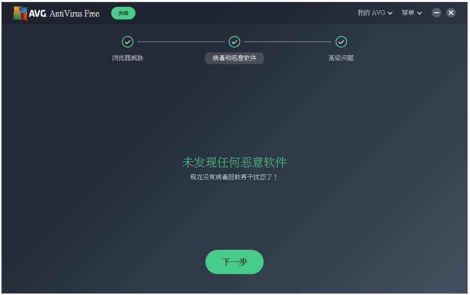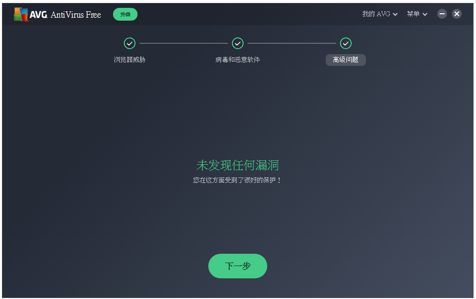 为了保护电脑系统的安全,大家会安装一些杀毒软件,除了火绒安全、360杀毒、电脑管家之外,小编还推荐使用AVG Anti-Virus,它是国外出品的一款智能杀毒软件。AVG Anti-Virus可以实时保护电脑,查找病毒和漏洞,及时进行杀毒修复。 如何正确安装使用AVG Anti-Virus? 从本站下载安装AVG Anti-Virus,解压压缩包,双击.exe文件,弹出界面,根据安装向导操作,选择语言,   点击【自定义】,选择软件保存路径,勾选需要安装的组件,点击【安装】,  开始安装软件,耐心等待,  软件安装完成,即可自动运行,如图,点击【继续】,  如果你允许软件收集关于计算机的一些数据,可以点击【我同意】,  第一次使用软件,点击【运行首次扫描】,软件即可扫描检测系统,稍等一会儿,   扫描结束,并未发现浏览器威胁,计算机中也不存在病毒、恶意软件和漏洞,    为了方便,你可以勾选【设定每月运行一次智能扫描】,即可实现定期扫描电脑、保持健康,  AVG Anti-Vi19. 我的心曾是一座孤岛,寸草不生,你来之后,花木繁盛。rus目前正在保护你的计算机系统,想避免黑客攻击、保护个人隐私,你可以启用【全面防护】功能。  总结:对比其他杀毒软件,AVG Anti-Virus的功能并不逊色,而且软件体积小,几乎不占内存。想了解更多精彩教程资讯,请关注wmzhe.com。 -