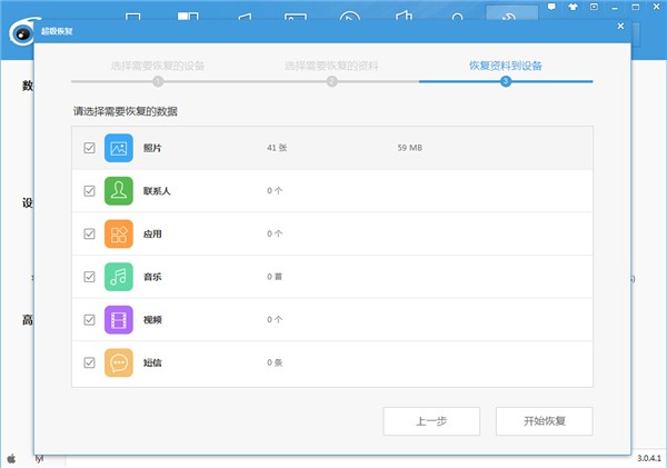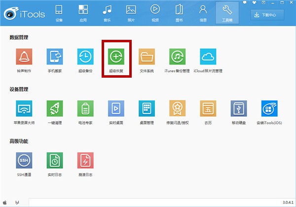 现在很多人喜欢将文件资料保存在手机中,以防万一,你一定要养成备份文件的好习惯。如果你使用的是iPhone手机,可以利用iTools(应用兔)进行备份,软件内置超级备份功能,可以保存你手机中的视频、音乐、短信、聊天记录,不用担心丢失啦。 如何使用iTools备份还原iOS设备文件? 打开iTools(应用兔),进入界面,点击上方【工具箱】,找到【超级备份】功能,  点击启用超级备份功能,如图,先选择需要进行备份的设备,  然后选择需要备份的数据和备份文件存放位置,点击【开始备份】,  软件开始备份资料到电脑,耐心等待即可。  如果后期需要恢复备份文件,可以点击【工具箱】——【超级恢复】,如图,  启用超级恢复功能,选择需要恢复的设备,进行下一步,  然后选择需要恢复的资料,如图,  勾选需要恢复的数据,也可以选择全部恢复,点击【开始恢复】,  弹出提示,在iOS设备中打开iTools软件,允许访问照片,  软件开始恢复数据,耐心等待即可。  应用兔还有铃声制作、手机搬家、桌面管理等功能,我们下期继续分享,请关注wmzhe.com。 -