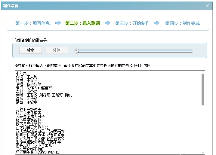 使用酷狗音乐听歌,如果你发现没有歌词或者歌词不正确,可以选择自行制作歌词,非常方便哟。本文就以酷狗2012为例,详细介绍制作歌词的方法,有兴趣的小伙伴可以了解参考。 酷狗2012如何制作歌曲歌词? 方法一 打开酷狗2012,随意播放一首37. 每个人的性格中,都有某些无法让人接受的部分,再美好的人也一样。所以不要苛求别人,也不要埋怨自己。歌曲, 发现没有歌词,点击切换【歌词写真】界面,鼠标右击,或者直接点击下方【菜单】,在列表中选择【搜索歌词】或者【制作歌词】,  这里点击【制作歌词】,弹出窗口,提示登录账号,  登录成功,如图,根据提示进行操作,  第一步,填写信息,包括制作人昵称、个性化签名等,  第二步,录入歌词,小编选择的这首歌曲已经有了歌词,只需要适当进行编辑修改,  第三步,开始制作歌词,按照图示要求操作即可,  编辑结束,点击完成,即可保存歌词。  方法二 打开酷狗2012,播放一首歌曲,勾选上方的【歌词】选项,正常情况下,电脑桌面会显示歌词;如果没有,将鼠标移到下方,出现菜单,选择【制作歌词】,按照提示操作即可。  想了解更多精彩教程资讯,请关注wmzhe.com。 酷狗2012制作歌词方法演示,按提示操作美如乌云翻滚冠人无远虑,必有近忧玉44. 其实,世事皆可作如此观,有浪,但船没沉,何妨视作无浪;有陷阱,但人未失足,何妨视作坦途。36. Obviously, it is high/(about) time that we took some effective measures to solve the problem.149.野旷天低树,江清月近人。《宿建德江》 缧缧无奈,被些名利缚,无奈被他情担阁,可惜风流总闲却。当初漫留华表语,而今误我秦楼约。梦阑时,酒醒后,思量着。一去紫台连朔漠,独留青冢向黄昏。酷狗,酷狗2012,制作歌词It is true that (True, / To be sure, / Admittedly,)…, but this is not to say (it is unlikely / it doesn’t follow / it doesn’t mean / it won’t be the case) that… |