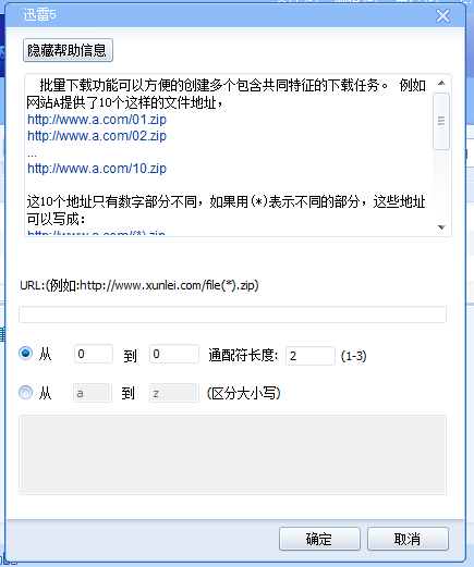 使用迅雷下载资源,为了节约时间,我们可以启用批量下载功能,只要这些文件具有共同特征,即可进行批量下载。本文详细介绍了使用迅雷5批量创建下载任务的操作方法,有需要的小伙伴可以了解参考。 如何使用迅雷5批量下载资源? 情况一 打开迅雷5,进入界面,如图,点击【新建】按钮旁边的倒三角,弹出菜单列表,选择【批量任务】,  打开窗口,如图,查看帮助信息,启用批量下载功能,你可以创建多个包含共同特征的下载任务,  举例: 网站A提供了10个文件地址, ,这10个地址只有数字部分不同,如果用(*)表示不同的部分,这些地址可以写成  通配符长度指的是这些地址不同部分数字的长度, 例如,从01.zip-10.zip,通配符长度就是2, 从001.zip-010.zip时通配符长度就是3;在填写从xxx到xxx的时候,虽然是从01-10或者是001到010,但是,当你设定了通配符长度,就只需要填写成从1到10。 填写完成,在示意窗口会显示第一个和最后一个任务的具体地址,你可以检查是否正确,然后点确定完成操作! 情况二 或者,你也可以直接使用鼠标右击桌面上的图标,弹出菜单,点击【新建任务】,  然后选择【批量任务】,弹出窗口,开28. 朋友,不要暗泪垂,失去对象哭不回,不如努力去工作,建功立业有作为,待到寻到好郎儿嫁娶吉祥日,郎才女貌把心遂。始批量下载资源,是不是很方便呢?  想了解更多精彩教程资讯,请关注wmzhe.com。 -