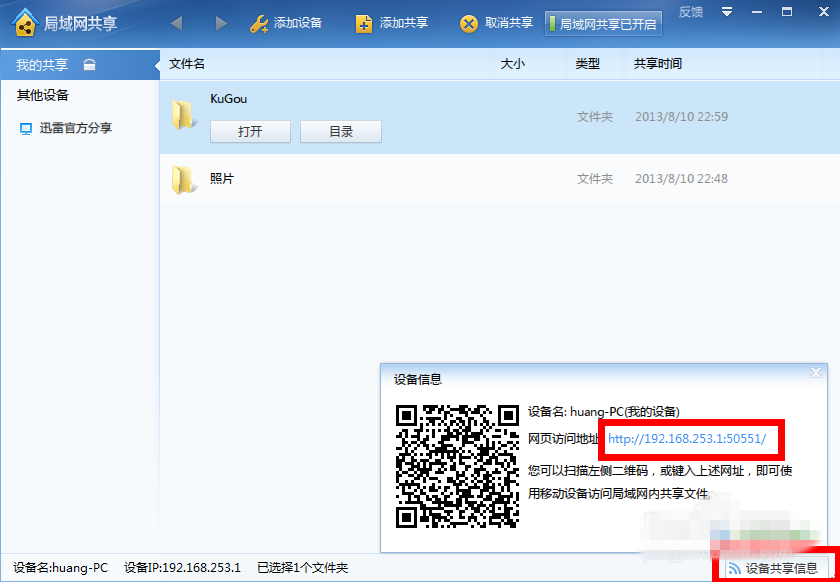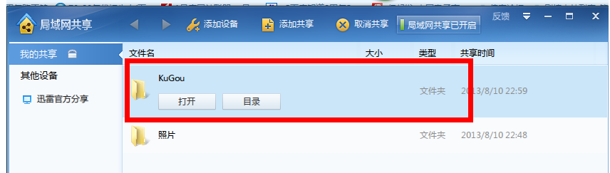 虽说迅雷7只是一款资源下载器,但是功能很丰富,除了文件下载之外,还提供了网速测试、远程下载、局域网共享等功能,可以极大满足用户日常需求。如果你需要快速分享文件给好友,可以通过迅雷进行传输,具体操作如下。 如何使用迅雷7进行局域网共享? 打开迅雷7,进入界面,点击右上方的工具图标,然后在列表中选择【局域网共享】服务,  软件会自动下载安装插件,安装完成,启用服务,  如图,点击【添加共享】,弹出窗口,找到需要共享的文件蔽明塞聪拼音:bì míng sè cōng释义:蔽遮;聪听觉灵敏;明看得清楚。蒙住眼睛不看,堵塞耳朵不听。指对外界事物不闻不问。出处:宋·曾巩《洪范传》夫然,故蔽明塞聪,而天下之情可坐而尽也。”示例:无,点击确定,  这时在【我的共享】一栏可以看到共享的文件夹,还会给出提示“1个项目已成功共享至根目录”,  点击右下方的【设备共享信息】,会出现一个网址,复制网址,将其发给局域网内的其他用户,  在浏览器中粘贴网址并打开网页,效果如图,文件共享成功。  想了解更多精彩教程资讯,请关注wmzhe.com。 -
