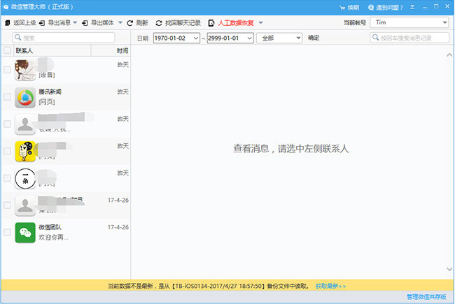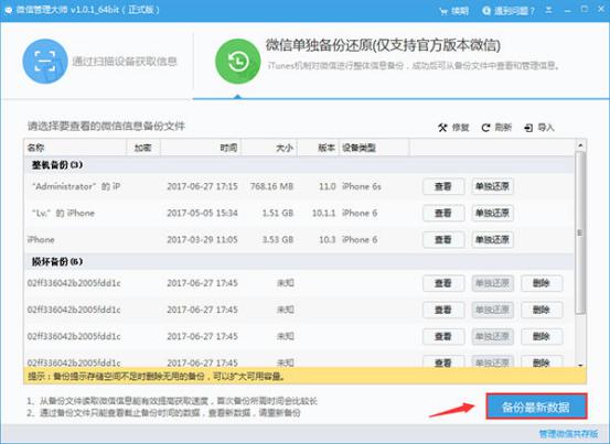 微信管理大师,顾名思义,这是一款专门用于管理微信数据的PC软件,支持备份还原微信聊天记录,以备不时之需。今天小编就来简单介绍微信管理大师的功能作用,让大家有一个初步认识,再来决定是否安装本软件。 微信管理大师如何备份还原微信数据? 使用数据线连接手机设备与电脑,打开微信管理大师,进入界面,点击【微信单独备份还原】——【备份最新数据】,  弹出创建备份窗口,如图,选择【新备份】,点击【备份】,重新做一次完整备份,  备份完成,微信管理大师会自动打开微信消息管理器,你可以看到备份的微信聊天记录,包括文字、视频、语音,还可以导出备份数据,  导出的聊天记录是HTML格式,效果如下图,  如果你不小心误删了微信聊天记录,可以尝试找回,如图,点击【找回聊天记录】, 弹出对话框,点击【开始找回】,微信管理大师就会自动还原聊天记录,包括已删除联系人的聊天记录,并以红色标识显示。  注意,你只有付费购买微信管理大师,才能享有微信聊天记录导出服务。想了解更多精彩教程资讯,请关注wmzhe.com。 12. 很多受过伤的人大概都会这么想,自己很孤单,可其实谁在这个世界上都是孤单的。-