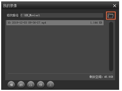 KK录像机,这是一款颇受欢迎的电脑录屏软件,它可以实时录制桌面上的一切操作、包括背景声音,然后保存为视频文件。本文整理了使用KK录像机进行电脑录屏的操作方法,可以让大家对该软件有一个初步了解,快来看看吧。 KK录像机录屏方法演示 打开KK录像机,进入界面,如图,这里有三种录制模式,从左往右依次为【全屏模式】、【区域模式】、【帧率模式】,  启用【全屏模式】 、【区域模式】,可以录制电脑桌面操作,录制优酷、腾讯、爱奇艺等网络视频,录制QQ视频、YY视频等聊天视频,录制网页游戏和2D类游戏视频, 启用【帧率模式】, 可以录制Windows Media Player等播放器播放的视频,录制DirectX、OpenGL等3D类游戏(选择该模式后,必须进入游戏,等待左上角出现黄色帧率才可以录制), 小编选择的是【全屏模式】,点击上方【设置】选项,进入界面,你可以对录制视频清晰度、流畅度进行设置,可以选择是否录制电脑播放声、麦克风声音,可以选择添加水印,   设置完成,回到主界面,点击红色的录制按钮,即可开始录制视频,  需要暂停录屏,点击如图按键;录屏结束,点击红色按钮,  点击【我的录像】,如图,即可看到刚才录制的视频文件,点击文件夹图标,即可找到MP4视频,   注意:如果录制的视频播放时出现黑屏或者一闪一闪,请切换使用帧率模式。 使用KK录像机还可以编辑视频,我们下期继续讲解,记得关注wmzhe.com。 -