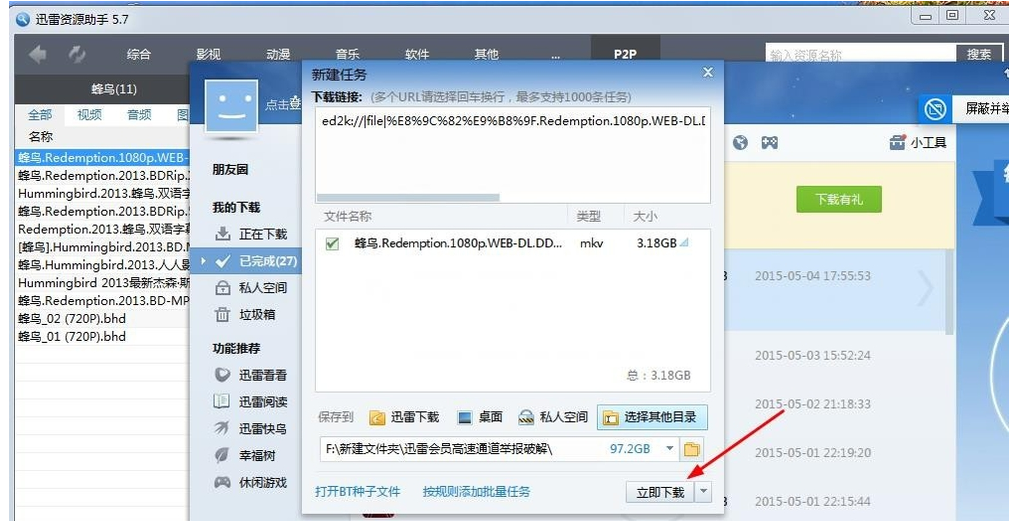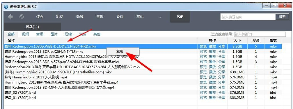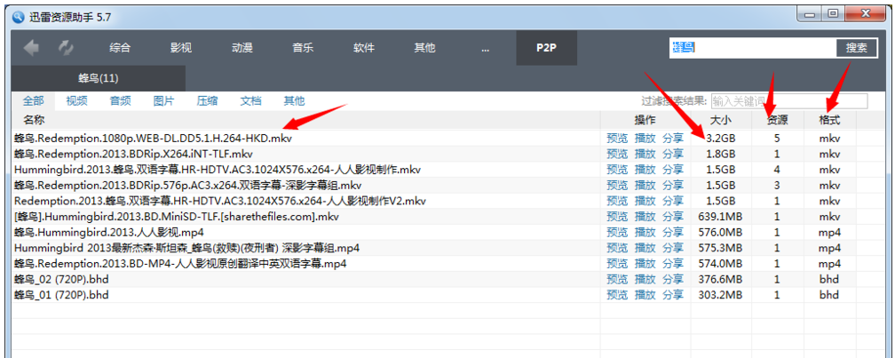 与其花时间到处搜索视频资源,还不如直接选择一款靠谱的种子神器,例如迅雷资源助手,有了它,23. 分手时不需要挽留,你只需要证明没有他(她)以后你过得更好就行。你可以快速查找需要的文件资源。下面小编就来介绍迅雷资源助手的功能和使用方法,看看是否合你心意。 迅雷资源助手使用方法说明 从本站下载安装迅雷资源助手,打开软件,进入界面,如图,  界面上方显示了资源分类,包括影视、音乐、软件等等,在搜索框中输入电影名字、演员名字、磁力链接或者番号,点击搜索,即可看到查找结果,  如图,点击【磁力链接】,就会自动弹出下载的磁力链接,然后你再点击【下载】,即可使用迅雷下载视频,  迅雷资源助手支持多种搜索方式,其中,P2P功能最为强大,它可以搜索电驴中的所有资源,如图,点击P2P,输入资源名称,点击【搜索】,注意,P2P网络必须正常连接,  搜索结果如图,你可以知道影片大小、影片格式、资源数,资源数越多越好,越多下载就越快,  选择其中一个资源,鼠标单机,右键复制即可,会自动弹出磁力链接,  如图,点击【立即下载】,就可以下载视频,前提是你的电脑必须安装迅雷,  想学习更多有关迅雷资源助手的功能使用,请关注wmzhe.com。 -