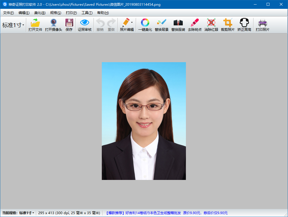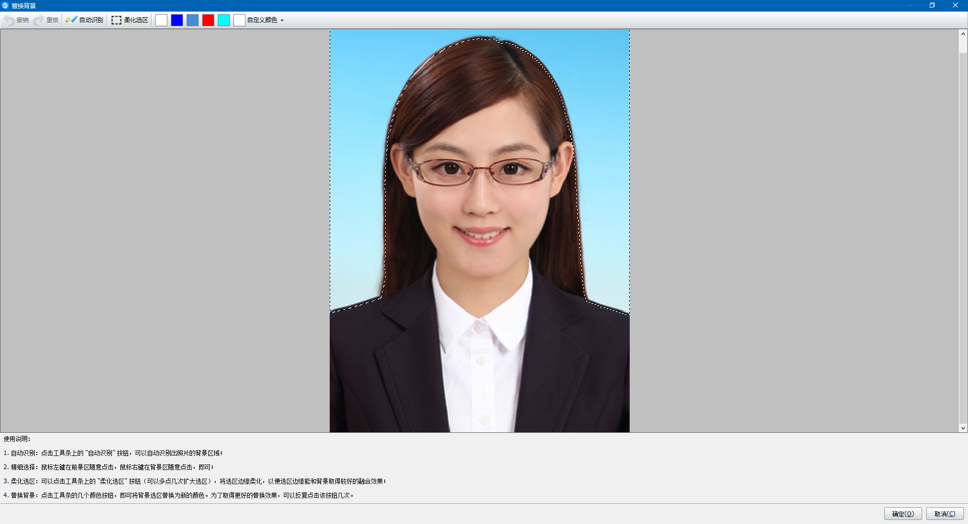 考试、面试都少不了一张符合要求的证件照,部分机构对证件照都有指定要求,比如背景要是某颜色的,衣服要是西服,难道要求一次就要去照相馆重拍一次吗?这里小编给大家推荐一款好用的神奇证照打印软件,只要是证件找问题都可以找它。 神奇证照打印软件替换背景教学 1.选择一张图片打开,如下图所示:  2.点击“替换背景”按钮,弹出界面如图所示:  3.默认会自动识别出背景图区域,点击“柔化选区”按钮,可柔化头发区域,点击将要替换成的背景颜色,可选择预设的颜色也可自定义颜色 4.最后点击“确定”按钮完成替换;  神奇证照打印软件替换服装教学 1.选择一张图片打开,如下图所示:  2.点击“替换服装”按钮,弹出界面如图所示:  3.在任意服装上双击,可将当前服装添加到证件照上,实现对服装的大小、位置调整,直到达到最优效果,可以切换服装类型查看更多服装样式 4.处理完之后,点击“确定”按钮即可 有了神奇证照打印软件,在处理证件照问题上就能得心应2. 我们每个人是可以被打倒的,但任何人也阻止不了我们从地上爬起来,亲爱的朋友,让我们把心态调整好,积极面对内心与外界,重获新生吧!手了,你还可以使用它来调整照片的色调,饱和度等效果哦,让你的证件照光彩照人,更多神奇证件照片打印软件使用教程尽在完美下载。 -