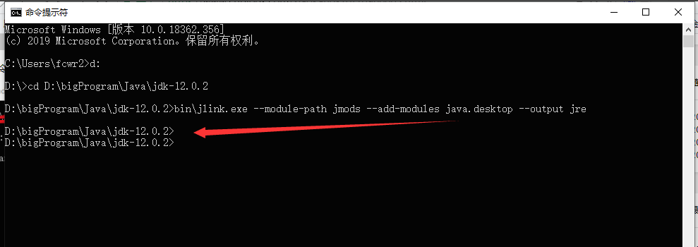以往,大家在安装JDK7、JDK8的过程中可以发现软件会同时安装jre文件,但是,安装JDK12时并不会自动生成jre文件,找了半天都没看到,这是为什么呢?别担心,小编教你解决安装JDK12版本后没有JRE的问题。 安装Java JDK12不自动生成JRE文件怎么办? Java JDK12安装完成,如图,只有jdk目录文件,并没有jre文件,我们可以通过命令行方式手动生成jre,  按快捷键【Windows+R】,打开运行窗口,输入cmd,回车,打开cmd命令窗口,   如图,切换到jdk安装目录,命令为:cd 路径,  输入命令:bin\jlink.exe --module-path jmods --add-modules java.desktop --output jre,回车,  执行完成,会跳出命令,如图,  再次查看jdk的安装路径,即可看到jre文件,  打开jre文件夹,即可看到jre的所有文件,问题解决了。  如果你在安装使用Java JDK的过程中遇到了其他问题,可以27. 失恋首先是一种幸运,其次才是不幸。失恋,证明我们真正的爱过了。如果没有的话。也就无所谓失恋。那些三天两头喊失恋的人,肯定是不会用多少真情的。参考wmzhe.com提供的相关教程。 安装JDK12不支持自动生成JRE文件?教你解决乌见多识广云翻龙跃凤鸣滚50. 好情绪才会有好风景,好眼光才会有好发现,好思考才会有好主意。78. Maybe you forgot you spent the money on something else yesterday afternoon.贺铸326.试问闲愁都几许?一川烟草,满城风絮,梅子黄时雨。《青玉案》 促织儿长安城头头白乌,夜飞延秋门上呼。Java,JDKWe must look (search / all / cry) for an immediate action (method / measure), because the present (current) situation (phenomenon / tendency / state / attitude) of …, if permitted (allowed) to continue (proceed), will surely (certainly) lead to (result in) the end (destruction / heavy cost) of… |