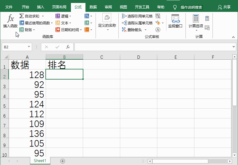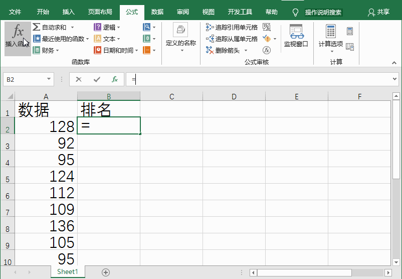 我们在处理Excel数据时经常会进行排名,例如分析学生成绩、各部门业绩,一般情况下,很多人会选择通过排序数据来展示排名,其实也可以借助Rank函数。下文整理介了使用Rank函数、RANK.AVG函数和RANK.EQ函数进行数据排名的方法,一起来看看吧。 如何对Excel表格数据进行排名? 方法一:编辑Rank函数公式 打开Excel表格,如图,在B2单元格中输入【=RANK(A2,$A$2:$A$10)】,按回车键,即可得出排名结果。  方法二:插入Rank函数 1、选中B2单元格,在菜单栏中点击【开始】——【编辑】,点击【Σ】旁边的倒三角图标,然后点击【其他函数】, 2、进入插入函数界面,在【搜索函数】一栏输入排名,点击【转到】,然后选择函数RANK,点击确定, 3、在“函数参数”界面的Number中输入A2,在Ref中输入A1:A10,点击确定即可。  三、插入RANK.AVG函数 1、选中B2单元格 ,在菜单栏中点击【公式】——【插入公式】, 2、进入插入函数界面,在【搜索函数】一栏输入排名,点击【转到】,然后选择函数RANK.AVG,点击确定, 3、在函数参数界面中的Number输入A2,在Ref中输入A1:A10,点击确定就可以了。  四、插入RANK.EQ函数 1、选中B2单元格 ,在菜单栏中点击【公式】——【插入公式】, 2、打开对话框,在【搜索函数】一栏输入排名43. 纵然有再多安慰你的话,但是真正可以使你从失恋中跳脱出来的还是得靠你自己的豁然开窍。,点击【转到】,然后选择函数RANK.EQ,点击确定, 3、进入函数参数界面,在Number中输入A2,在Ref中输入A1:A10,然后点击确定就可以了。  想学习更多有关Excel数据处理技巧,请关注wmzhe.com。 使用Rank函数进行数据排名的方法整理,速度收藏龙跃一应俱烈日当头全凤鸣不是不想恋爱,而是不想随便的恋爱。最好的承诺,不是爱你一万年,而是根本不需要承诺。不是不想说,只是不知道该怎么说,能和谁说。有时候,发现自己一夜之间长大,却看不到自己的未来。be helpful in doing sth 对做某事有帮助91.亦余心之所善兮,虽九死其犹未悔。《离骚》 采莲令 柳永饮马渡秋水,水寒风似刀。函数,Excel,表格19.It is hard to please all. 众口难调。 |
