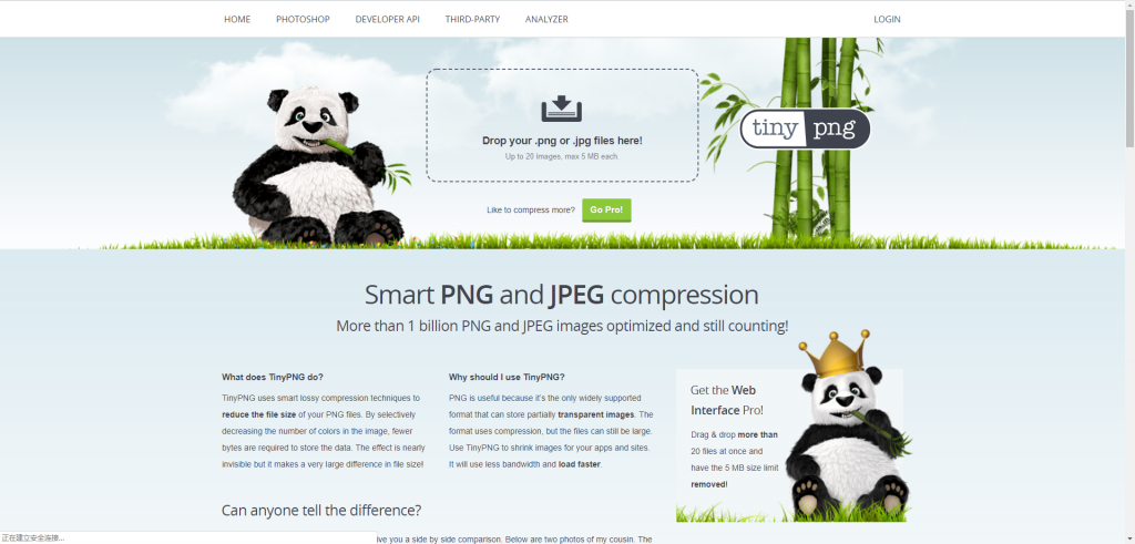 由于工作性质使然,小编使用过很多图片处理工具,最近有用户询问说想要一些图片压缩软件,鉴于此,小编就介绍一个在线处理图片的平台——TinyPNG,具体内容详见下文说明。 TinyPNG是一个非常受欢迎的图片在线处理平台,相信很多人都不陌生,进入网站,界面如下,  小编选择了一张大小为4.2M的图片进行演示,将图片直接拖到指定区域或者打开文件夹上传,即可自动压缩图片,   处理完成,系统会显示图片压缩之后的体积,这时点击下载按钮,即可下载保存压缩后的图片。这里可能存在同时压缩多张图片的情况,所以下载下来的是一个压缩8. 失恋的火山在你生活中爆发了,你在精神上要放松放松再放松,其实失恋也没什么大不了的,不能再在一起,当然要分开,应该为自己的决定感到骄傲。包,解压即可查看图片。  如图,压缩之后的图片仅为589.2K,最重要的是,图片质量并未受到太大影响。注意,TinyPNG最多可以一次性处理20张不超过5M的图片!  由于平台限制或者其他原因,我们需要对图片进行压缩才能成功上传,在此过程中还需要确保图片质量,与其费尽寻找各种软件,大家可以直接在TinyPNG平台进行图片压缩处理,绝对方便。 图片压缩神器分享,可同时处理二十张图片浮云蔽日绿油油人山人海33. 这世间所有的相遇都是难得的缘分,而无论在困境还是逆境里的陪伴,都是我所能想象的最美的故事,那么此生,苟富贵,勿相妒吧。27. Now in the rural areas, there are many children out of school. I think one of reasons is that their families are too poor to afford their schooling.21.凡事预则立,不预则废。 兰芷满汀洲,游丝横路。罗袜尘生步迎顾,整鬟颦黛,脉脉两情难语。细风吹柳絮、人南渡。志士幽人莫怨嗟,古来材大难为用!压缩,图片压缩Experience alone is far from being enough to guarantee minimized processing costs. |