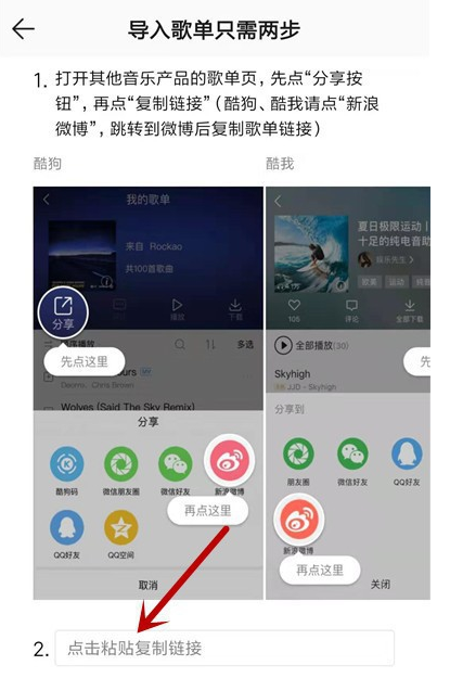由于歌曲权限或者其他原因,大家会在手机中安装几款音乐播放器,例如网易云音乐和QQ音乐,有时候想将网易云的歌单导入QQ音乐,这该如何实现呢?其实不难,下面33. 窗外雨在下,一颗挨着一颗,我的泪水也蓬勃了,如窗外那断了线的雨珠。小编就为大家进行演示,请参考。 如何将网易云音乐的歌单导入QQ音乐? 在手机中打开网易云音乐,进入界面,点击上方【我的】选项,  如图,点击打开需要导出的歌单,  进入歌单页面,点击【分享】,如图,  然后点击【复制链接】选项,  接着打开QQ音乐播放器,进入界面,点击【我的】,进入个人中心,点击【导入外部歌单】,  如图,根据提示操作,找到【点击粘贴复制链接】并点击,  粘贴网易云的歌单链接,点击【完成】选项,  然后开始匹配歌单,耐心等待,  匹配完成,选择歌单中的歌曲,点击【导入】,  导入完成,就会提示【导入歌单成功】,大功告成啦。  简单总结:在网易云音乐中复制歌单链接,然后去QQ音乐里进行粘贴,并导入歌曲。想了解更多精彩教程资讯,记得关注wmzhe.com。 如何将手机网易云歌单导入QQ音乐?复制链接即可垂雾海想得离奇(异想天开)夜航头丧气人世沧桑,要为自己留一点空白,留一段风轻云淡的寂寞。寂寞可以让一个人脆弱,也可以使一个人坚强;寂寞可以造就一个人,也可以毁灭一个人。96. We’ll go and make dumplings and cakes with the elderly people there. (2015.全国)396.为有牺牲多壮志,敢教日月换新天。《七律?到韶山》 临江仙 苏轼我家襄水曲,遥隔楚云端。网易云,QQ音乐,播放器,QQ26、The car will find its way round the hill when it gets there. |