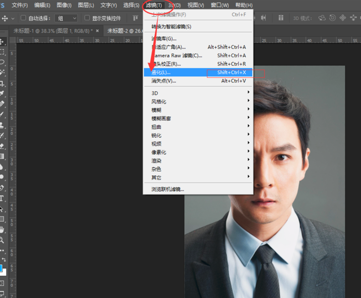 使用PS软件进行人物修图的方法有很多,我们主要还是根据实际要求进行操作,如果你需要对五官(眼睛、鼻子、嘴唇等)进行美化,可以使用液化功能。下面小编就来介绍使用PS液化工具进行修图,有兴趣的小伙伴可以学习。 如何使用PS液化功能进行五官修图? 打开Photoshop软件,导入一张图片素材,就用吴彦祖的图片做示例,  在菜单栏中点击【滤镜】——【液化】,或者按快捷键【shift+ctrl+X】,  弹出【液化】窗口,如惠然肯来拼音:huì rán kěn lái释义:惠赐,敬辞。用作欢迎客人来临的客气话。出处:《诗经·邶风·终风》终风且霾,惠然肯来。”示例:你我是患难故交,今复~,足见感情,还要说什么套话。★蔡东藩、许廑父《民国通俗演义》第六十七回图,右侧会出现【人脸识别液化】功能,  在这里可以调节眼睛大小,效果如图所示,  调整人物鼻子,效果对比如图,  调整人物脸型,前后效果对比如图所示,  在工具栏中选择人脸识别模式,同样可以调整细节,非常方便,  注意:ps cc2015及以上版本增加了人脸识别液化的功能,低版本软件不能使用该功能。想学习更多有关Photoshop使用方法技巧,可以关注wmzhe.com。 如何对人物五官进行修复美化?就选PS液化功能逼杂乱无章上梁山林冲棒宁静和谐打洪教头11. 人生难免经受挫折,风雨过后就是彩虹;生活难免遭受苦难,雨过天晴终有阳光。从我们上次见面到现在已经有十个多月了。262.溪云初起日沉阁,山雨欲来风满楼。许浑《咸阳城东楼》 因度此阕,以纾客怀。应共冤魂语,投诗赠汨罗。PS,Photoshop,修图No easy method (solution / recipe / remedy) can be at hand (found / guaranteed) to solve (resolve / tackle) the problem of …, but the common (general / public) recognition of (realization of / awareness of / commitment to) the necessity (importance / significance) of … might be the first step towards change (on the right way / in the right direction). |