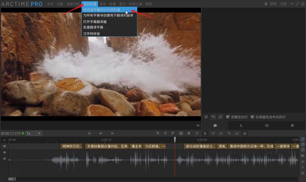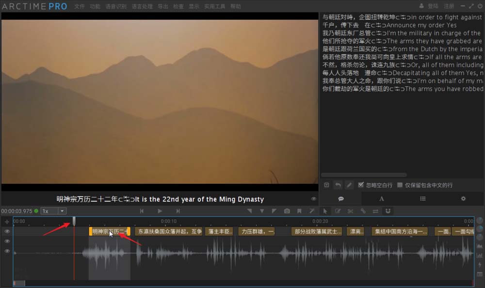 我们在看外语片时会发现屏幕上呈现的是双语字幕,如此一来,即可为观众解决语言障碍,非常贴心。同理,大家平时制作短视频也可以添加双语字幕,给人一种高大上的感觉,下文详细介绍了使用Arctime给视频制作双语字幕的发发,请参考。 如何使用Arctime制作视频双语字幕? 先准备好双语字幕文件,样式如图,注意,字幕文件必须是TXT格式,  打开Arctime Pro软件,在菜单栏中点击【文件】——【导入音视频文45. 感情的事总是很难说清楚,我知道分手总是令人难过的,但无论如何,我永远都会站在你这一边,支持你。努力让自己快乐起来吧,好吗?件】,添加视频素材,  然后点击菜单栏中的【文件】——【导入双语字幕文稿】,添加字幕文件,  弹出导入双语文本窗口,查看是否一行一种语言,否则软件会提示修改,  点击【预览效果】,如果确认无误,点击下方的【继续】,  导入成功,回到软件主界面,右边就是双语文本,下方就是视频中的音频波形,  如图,点击【快速拖拽创建工具】,  进入快速创建状态,鼠标图标的上方会有字幕出现,然后点击播放按钮,  开始播放视频,将鼠标移到波形上,出现字幕时就按住鼠标左键并一直拖动,直至说话结束,  如图,这样就成功添加了一段字幕,  然后点击【选择工具】按钮,返回选择状态,对添加的字幕进行精确校对,  第一个箭头所指的是播放条,可以左右拖动;第二个箭头指向的是字幕方块,也可以进行左右拖动,  选择字幕方块,将鼠标移动至黄色区域,按住鼠标左右拖动即可改变字幕方块大小,这样也就改变了字幕出现的时间,  点击播放按钮,按照上述操作,精确校对字幕出现的时间,  校对完成,点击菜单栏中的【语言处理】——【将双语字幕切分为双轨道】,  字幕块就变成了两段双语字幕,如图,  播放视频,可以看到视频界面显示的是双语字幕,大功告成。  想学习更多有关Arctime的视频处理教程,请继续关注wmzhe.com。 图文教学之制作双语字幕视频,方法不难寸草不生万紫千红瘦骨嶙峋33. 爱一个人就不免希望自已更美丽,希望自己被记得,希望自己的容颜体貌在极盛时于对方如霞光过目,永不相忘,即使在繁花谢树的冬残,也有一个人沉如历史典册的瞳仁可以见证你的华采。这份工作太辛苦,差点使我半途而废。302.接天莲叶无穷碧,映日荷花别样红。《晓出净慈寺送林子方》 八声甘州 张炎惟怜一灯影,万里眼中明。Arctime,字幕,视频A multitude of factors could account for (contribute to / lead to / result in / influence) the change (increase / decrease / success/ failure / development) in… |