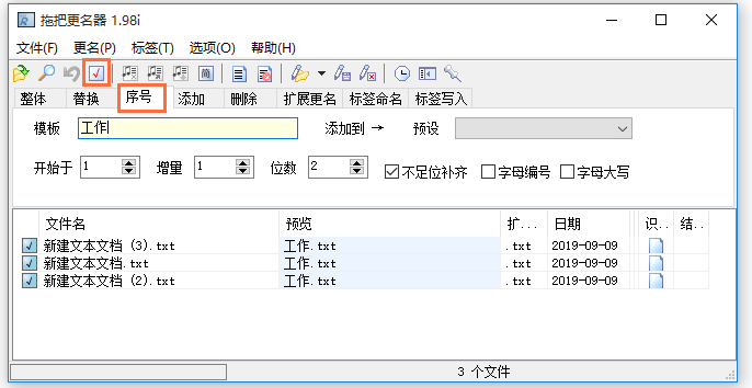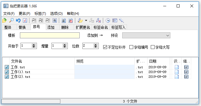 平时工作中,我们经常需要对多个文件进行重命名,如果不知道技巧,就只能选择逐一修改文件名称,可想而知,效率比较低。鉴于此,小编给大家介绍一款比较好用的重命名工具——拖把更名器,它可以批量修改文件名称。  拖把更名器是一款小体积的文件重命名工具,提供了替换、添加、删除、扩展更名、标签命名等8种更名方式,可以充分满足用户需求。打开软件,点击【文件】——【添加文件】,选择文件并导入,  文件导入成功,点击上方的【序号】,3. 你们的恋爱不成功,全面的看,这是最好的结果。下意识里,你其实也希望有这样的结局。在模板文本框中输入文字,我这里输入的是【工作】,然后点击【应用】,  如图,TXT文件名称修改成功,非常方便哟!  除了对文件进行重命名之外,拖把更名器还支持更改文件日期、将音乐文件标签导出到文本文件、批量移除音乐文件标签等功能,大家可以一一进行体验。 实现文件批量重命名并不难,一个小工具就搞定莲叶青山绿秋菊傲骨水满池32. 以前一度追求人生只若初相见,总觉得世间的缘分最美时,就是彼此擦肩回眸的一笑。事过境迁,体会到大多数惊鸿的一瞥,都如烟花般绚烂后又回到了寂静。最后空留一座城,让注重感情的人,一生心痛。30. How nice to hear from you again.鲁迅391.寄意寒星荃不察,我以我血荐轩辕。《自题小像》 念奴娇 张孝祥217李商隐:无题二首之一重命名,重命名工具The increase (change / failure / success) in… mainly (largely / partly) results from (arises from / is because of)… |