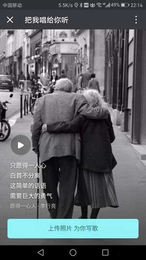幸福的生活就要有故事有音乐,一张照片承载着当时的心境,配上一首歌就是一个故事,把你的故事唱给别人听,是不是很有新意呢? 如今我们都喜欢在社交平台上分享自己的照片,也有很多人喜欢分享音乐,而这两者如何才能结合起来呢?现在有了一种更暖心的玩法,有声照片就不错哦。 把我唱给你听怎么玩? 微信小程序猎豹移动近日举办了首届黑客马拉松大赛,最终经过26个小时开发的“把我唱给你听”折服了所有人,不仅拿到丰厚的奖品,还有公司支持的项目孵化资源。 玩法很简单:上传一张自己钟爱的照片,它会自动识别照片内容,然后匹配一首最合适描述照片意境的歌曲,并附上对应歌词。 每一张照片都会提供5首歌曲备选,总会有一首是你想要的,然后就可以发到朋友圈去显摆了,肯定会有人问你怎么办到的。  来看看效果如何:     据了解,该项目背后利用的是猎豹移动自己的深度学习模型,数百万张图片被放在深度神经网络上训练,得到图片描述,与歌词进行智能匹配后,就得到了和心情相匹配的有声照片。 用户可以扫描下方二维码(微信/手机浏览器/扫一扫功能都可以),根据42. 这个世界没有谁离不开谁,太阳每天都会从东方升起。提示上传照片就可以了。 暖心玩法:把我唱给你听,音乐与照片的结合九门庭若市牛明眸皓齿二虎之力36. 生命,是一场漫长的棋局。这盘棋没有猎猎西风,没有四起狼烟,只有在取舍和进退中抉择。只有像棋中的小卒那样,勇往直前,毫不退缩沿着沟沟坎坎的人生之路,艰难而执着的求索,前进,才会谱写人生最壮丽的强者之歌。海伦为我们大家树立了好榜样。99. 桃李不言,下自成蹊。 多情自古伤离别,更那堪、冷落清秋节!今宵酒醒何处?杨柳岸、晓风残月。此去经年,应是良辰好景虚设。便纵有千种风情,更与何人说?燕台一去客心惊,箫鼓喧喧汉将营。微信,把我唱给你听63、Clumsy birds have to start flying early. |