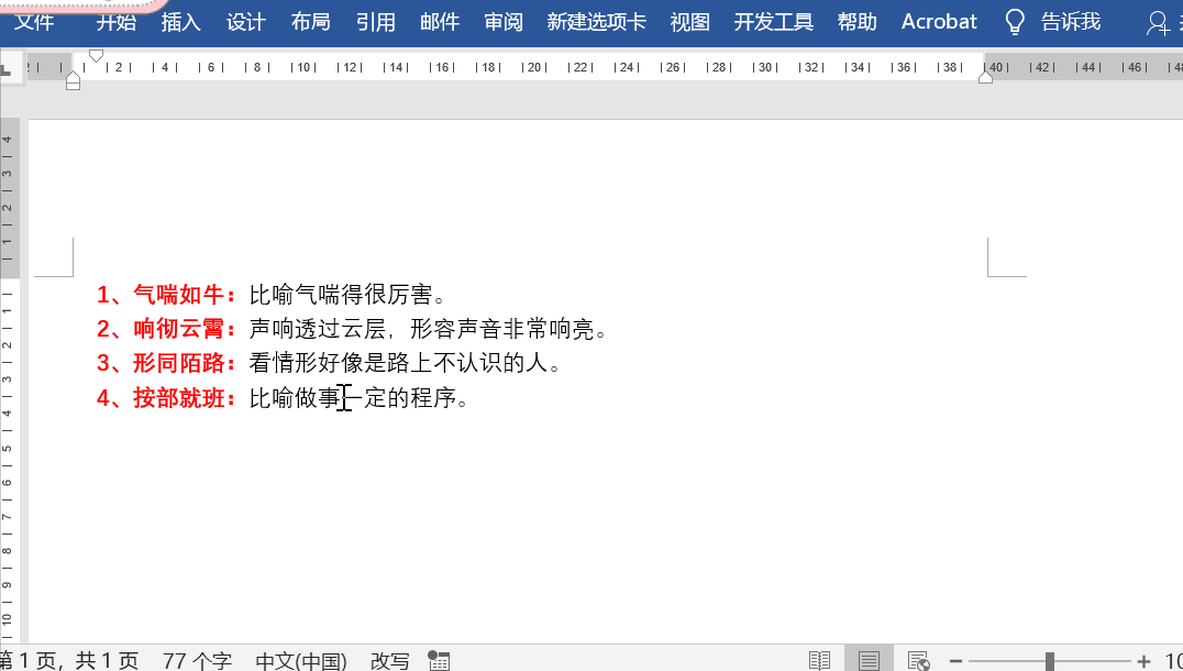 虽然大家每天都会接触Word软件,但是这不代表你已经熟练掌握了使用技巧,毕竟随时可能会遇到问题,被困扰着,鉴于此,小编根据小伙伴们的提问整理了一些Word难题,并附带了解决方法,大家可以收藏学习! 1、取消首字母大写 在Word文档中输入英文字母,默认情况下,首字母是大写状态,有什么方法可以快速取消首字母大写状态呢? 情况一、暂时取消 字母输入完成,按回车键,然后直接按快捷键【Ctrl+Z】,即可取消首字母大写状态。  情况二、永久取消 点击——【文件】——【选项】——【校对】——【自动更正选项】——【自动更正】,取消勾选【句首字母大写】,如图,输入英文字母,按回车键,首字母格式不变。  2、批量剪切和粘贴文字 大家知道,【Ctrl+X】、【Ctrl+V】是一组剪切粘贴快捷键,但是只支持一次性使用,如果你需要批量剪切文字内容,应该怎么办呢?选中文字内容,按【Ctrl+F3】进行剪切,然后打开空白文档或者将光标移到需要粘贴的地方,按快捷键【Ctrl+Shift+F3】即可进行粘贴。  3、打字时后面文字消失了 在文本中插入内容时后面的文字消失了,很多人遇到过这种情况,这是为什么?怎么解决?之所以会出现这种情况,主要是因为文档处于改写状态,只要将其更改为插入状态即可。 解决方法一: 点击文档状态下的“改写”,将其修改为“插入”。  解决方法二:按键盘上的Insert键。 4、图片显示不全 在Word文档中插入图片,发现图片并不能完整显示,应该怎么办呢?选中图片所在的行,点击【开始】——【段落】——【间距】,将行间距设置为单倍行距。  如果你在使用Word办公时遇到了其他问题,可以参碧空如洗拼音:bì kōng rú xǐ释义:碧空浅蓝色的天空。蓝色的天空明净得像洗过一样。形容天气晴朗。出处:宋·张元干《水调歌头》词万里碧空如洗,寒浸十分明月,帘卷玉波流。”示例:其时~,有一群大雁鹅正排成人字从高空中飞过。★沈从文《长河·秋(动中有静)》考wmzhe.com提供的相关教程。 Word办公遇到难题了,别急,教你搞定出水春光明媚芙三三两两蓉31. 每晚,车床的隆隆声都在我的耳畔回响,我不再感觉这是噪音,我不再因此而难以入眠,这声音比妈妈轻柔的摇篮曲更优美,我就在这声音的怀抱中枕着父爱入眠。不管你将来做什么,英语都是最重要的。杨万里301.小荷才露尖尖角,早有蜻蜓立上头。《水池》 望中洒旆闪闪,一簇烟村,数行霜树。残日下渔人鸣榔归去。败荷零落,衰杨掩映,岸边两两三三,浣纱游女。避行客,含羞笑相语。春寒赐浴华清池,温泉水滑洗凝脂。Word,快捷键,文档All these changes in China’s economic life have brought changes in China’s social and cultural life as well, many of which unwanted. |