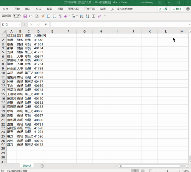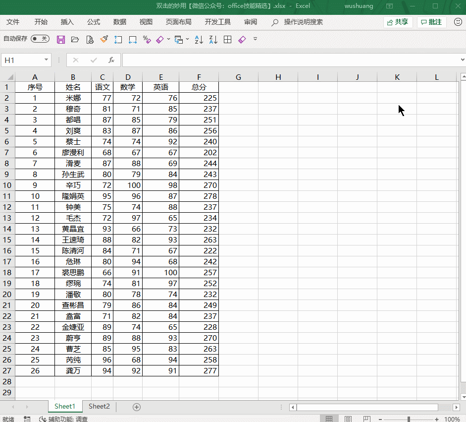 日常电脑办公除了需要借助快捷键之外,更是离不开鼠标的配合,那你知道,双击鼠标有什么作用吗?本文整理了在处理Excel表格时双击鼠标的几大作用,如果你有兴趣,可以参考学习。 快速调整行高列宽 用鼠标选中需要调整的表格,双击上面的两行(列)之间的线条,这时会发现表格根据单元格内容自动调整了单元格行高(列宽)  快速显示隐藏的行(列) 把鼠标放在隐藏区域的列标或行号边线上,待光标变成双向箭头时,双击鼠标即可显示行列。  快速跳转光标定位 需要将光标直接跳转到表格最尾端,双击单元格的下边线,即可一秒跳转到它的区域最下方。 同理: 双击单元格上框线,光标跳转到区域最上边。 双击单元格左框线,光标跳转到区域最左边。 双击单元格右框23. 分手时不需要挽留,你只需要证明没有他(她)以后你过得更好就行。线,光标跳转到区域最右边。  快速选词 一般来说,大部分人会选择长按鼠标左键来拖动选择内容,其实鼠标双击可以快速选取一个词或一个日期,非常方便。  重命名工作表 需要重命名Excel工作表,鼠标双击工作表标签,就能进行重命名。  如果你想了解更多有关制作处理Excel表格的小技巧,请关注wmzhe.com。 制作Excel表格时双击鼠标有妙用,想学习吗?穿万无一失云争权夺利而过19. 痛也是怕比较的。把自己所痛的放在人群之中,那么你会在芸芸众生的痛苦之中发现,其实自己所苦苦纠结的疼痛,真的不算什么。我们身心的愉悦,有两重境界:一曰饱,一曰滋润。have a good command of 精通;such … that 如此以至于;be elected as 被选为李清照295.莫道不销魂,帘卷西风,人比黄花瘦。《醉花阴》 遨头小簇行春队,步苍苔、寻幽别墅,问梅开未?重唱梅边新度曲,催发寒梢冻蕊。此心与东君同意,后不如今今非昔,两无言相对沧浪水,怀此恨,寄残醉。野蔬充膳甘长藿,落叶添薪仰古槐。Excel,表格38、In peace prepare for war. |