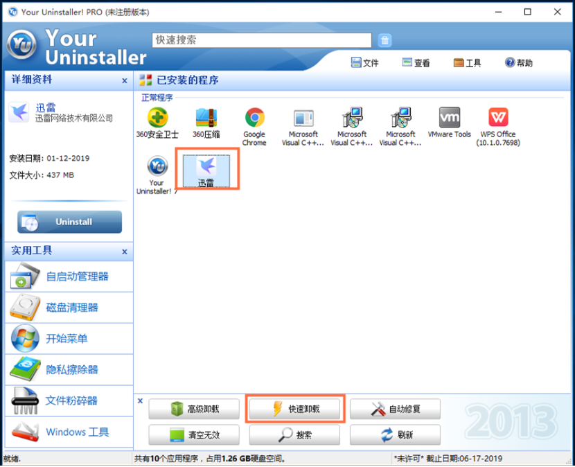 很多人不知道,软件卸载之后还会残留一些文件信息,你只能继续进行二次清理,想想还是挺麻烦的。其实,我们只需要一款软件卸载工具就能解决问题,例如Your Uninstaller!,它可以完整卸载系统中的软件应用,不留一丝痕迹。 如何利用Your Uninstaller!卸载电脑软件? 打开Your Uninstaller!软件,进入主界面,选中需要卸载的程序应用,  小编就以迅雷软件为例,存十一于千百拼音:cún shí yī yú qiān bǎi释义:指亡多而存少。出处:语出晋·陆机《叹逝赋》顾旧要于遗存,得十一于千百。”示例:而今学者尚知宗孔氏、崇仁义、贵王贱霸而已,其大经大法皆亡灭而不救、坏烂而不收,所谓~,安在其能廓如也!★唐·韩愈《与孟尚书书》选择迅雷,点击【快速卸载】按钮,  如图,弹出窗口,点击【卸载】,将迅雷从电脑中卸载,  卸载完成,根据向导提示操作,此时软件正在扫描Windows注册表,  稍后会继续扫描安装文件夹中的多余文件,然后移除注册表条目,   清理完成,迅雷软件已经从电脑中成功移除了。  此外,Uninstaller!还有启动项管理、磁盘清理、隐私擦除、文件粉碎等实用功能,大家可以逐一体验! Your Uninstaller!使用体验,一分钟完美卸载电脑软件朝霞见多识满城风雨广灿烂6. 我以前开玩笑夸他,他竟然感到不安。我知道,其实成功与否,都是需要自己默默努力的事情,别人的褒贬,只是累赘。之后就不再提。首先,阅读文学书籍有助于提高我的写作技能并开阔视野。再者,还能丰富我的生活。楚屈原87.与天地兮同寿,与日月兮齐光。《涉江》 昭君不惯胡沙远,但暗忆、江南江北。想佩环、月夜归来,化作此花幽独。山光忽西落,池月渐东上。软件卸载,系统,迅雷Unless there is a common realization of (general commitment to)…, it is very likely (the chances are good) that… |