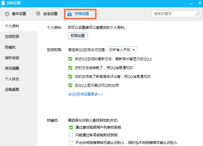 每次登录QQ,都会弹出一些添加好友的申请提示,还有很多推广信息,非常烦人,有什么方法可以屏蔽呢?很简单,我们可以设置QQ防骚扰,拒绝被陌生人添加好友。 如何设置启用QQ防骚扰功能? 打开电脑,登录QQ,进入主界面,鼠标点击主菜单图标,选择【设置】,  进入设置界面,鼠标点击上方的【权限设置】,  如图,点击左侧的【防骚扰】功能毁于一旦拼音:huǐ yú yī dàn释义:于在;一旦一天。在一天的功夫全被毁掉。多指长期劳动的成果一下子被毁掉。出处:《后汉书·窦融传》百年累之,一朝毁之。”示例:百余年辛苦经营的圆明园,~,更是令人椎心泣血的莫大恨事。★高阳《清宫外史》下册,你可以自行勾选相关设置,完全随心情。 启用QQ防骚扰功能,拒绝被加好友屈指血雨腥七嘴八舌风可数34. 爱在过境,缘分不停,向来情深,奈何缘浅。窗外小雨淅淅沥沥,我最后听见了下雨的声音,我的世界被吵醒,窗台上的滴落的雨滴,轻敲着悲哀,凄美而动听。眼睛在下雨,心却为你打伞,一颗潮湿的心,一份滴水的痴情!倘若听见我哽咽的声音,请捂住耳朵,让我一向孤傲;倘若听看到我心碎的裂痕,请闭上眼睛,让我一向伤悲……如果每个人都为保护环境做出贡献,世界会变得更加美好。260.当局者迷,旁观者清。《新唐书?元行冲传》 弱柳千丝缕,嫩黄匀遍鸦啼处。寒入罗衣春尚浅,过一番风雨。问燕子来时,绿水桥边路,曾画楼、见个人人否?料静掩云窗,尘满哀弦危柱。128孟浩然:过故人庄QQ,鼠标It is high time that we put an end to the deep-seated (unhealthy / undesirable / deplorable) situation (tendency / phenomenon) of… |