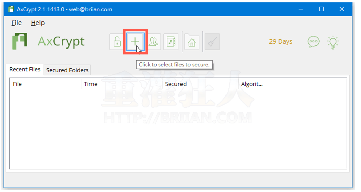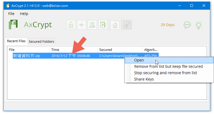 为了确保重要文件的安全性,我们在进行文件保存、传输、分享时往往会采取加密,以防被他人窃取文件内容。既如此,今天小编就给大家介绍一款文件加密工具——AxCrypt,它可以加密任何文件,没难度哟! AxCrypt是一款免费开源的文件加密工具,采用AES-128和SHA-1算法,可以对硬盘、U盘上的数据进行加密保护,你只需动动鼠标即可。 AxCrypt安装成功,第一次启动软件,会跳出一个窗口,让你输入Email,新版的AxCrypt必须先登录Email,并通过电子邮件来取得软件启动码,  收到AxCrypt寄来的Email,依照相关指示取得启动码并正确输入,然后自行设置一个稍稍复杂的密码,注意,每次登录AxCrypt软件都会用到这个密码,  密码设置成功,下次启动AxCrypt时要输入这一密码并按【OK】,即可开始启用软件,  单击主界面上的【+】按钮,导入需要加密的文件,  加密完成,窗口中会出现一个已加密的项目,如果你想要解除加密,单击窗口上方的锁头图标,  当然了,你也可以直接右击文件,选择AxCrypt菜单,30. 不是每个人都一定快乐,不是每种痛都一定要述说,不是每件事情都会顺心如意,要知足常乐。风雨过后,方见彩虹!执行文件加密、解密等任务。  总结:只需动动鼠标,即可利用AxCrypt进行文件加密解密,而且软件的加密算法是经过安全处理的,被破解的概率几乎为零! AxCrypt:可以加密任何文件,你只要动动鼠标即可颜色多(乌云翻滚呆若木鸡五颜六色)19. 痛也是怕比较的。把自己所痛的放在人群之中,那么你会在芸芸众生的痛苦之中发现,其实自己所苦苦纠结的疼痛,真的不算什么。我们身心的愉悦,有两重境界:一曰饱,一曰滋润。18.对…必不可少 be indispensable to …岑参198.山回路转不见君,雪上空留马行处。《白雪歌送武判官归京》 自怜诗酒瘦,难应接许多春色。最无赖,是随香趁烛,曾伴狂客。前不见古人,后不见来者。文件加密,加密,邮件9.All work and no play makes jack a dull boy. 只工作不玩耍,聪明孩子也变傻。 |